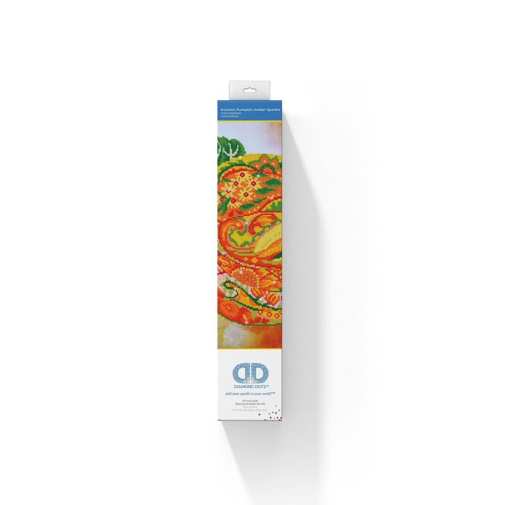Bring the cozy charm of the harvest season to life with the Diamond Dotz Autumn Pumpkin Amber Sparkle Diamond Painting Kit. Featuring a radiant pumpkin in golden amber tones with intricate paisley and floral detailing this kit captures the magic of fall diamond art.