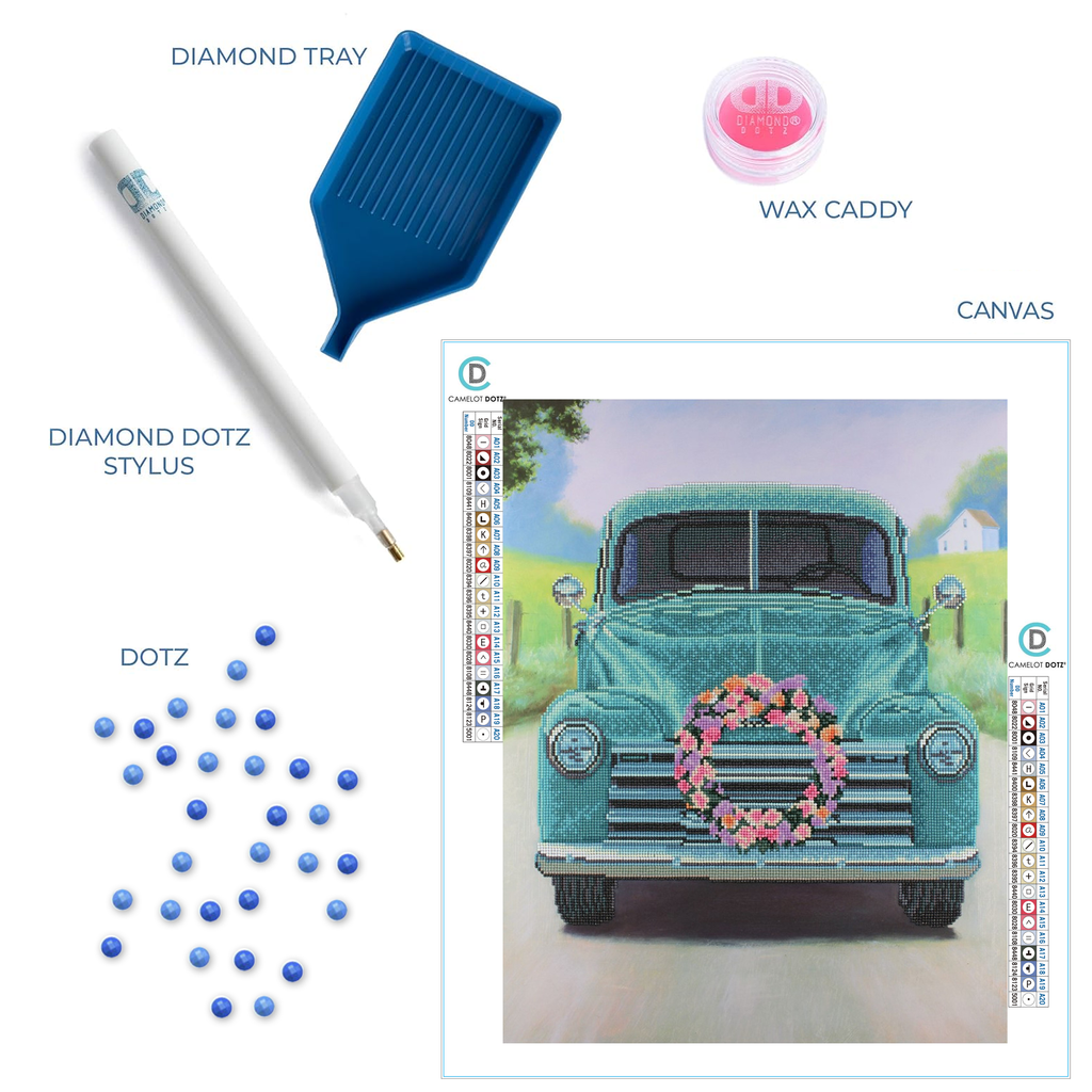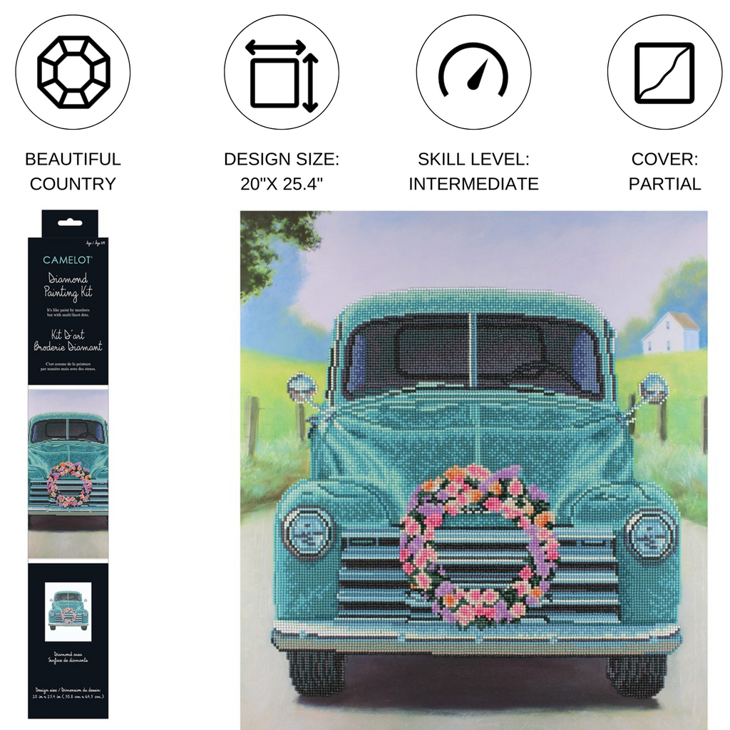 - 🌸 Features a vintage-style truck with floral wreath ideal for diamond painting cars fans