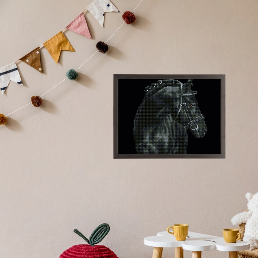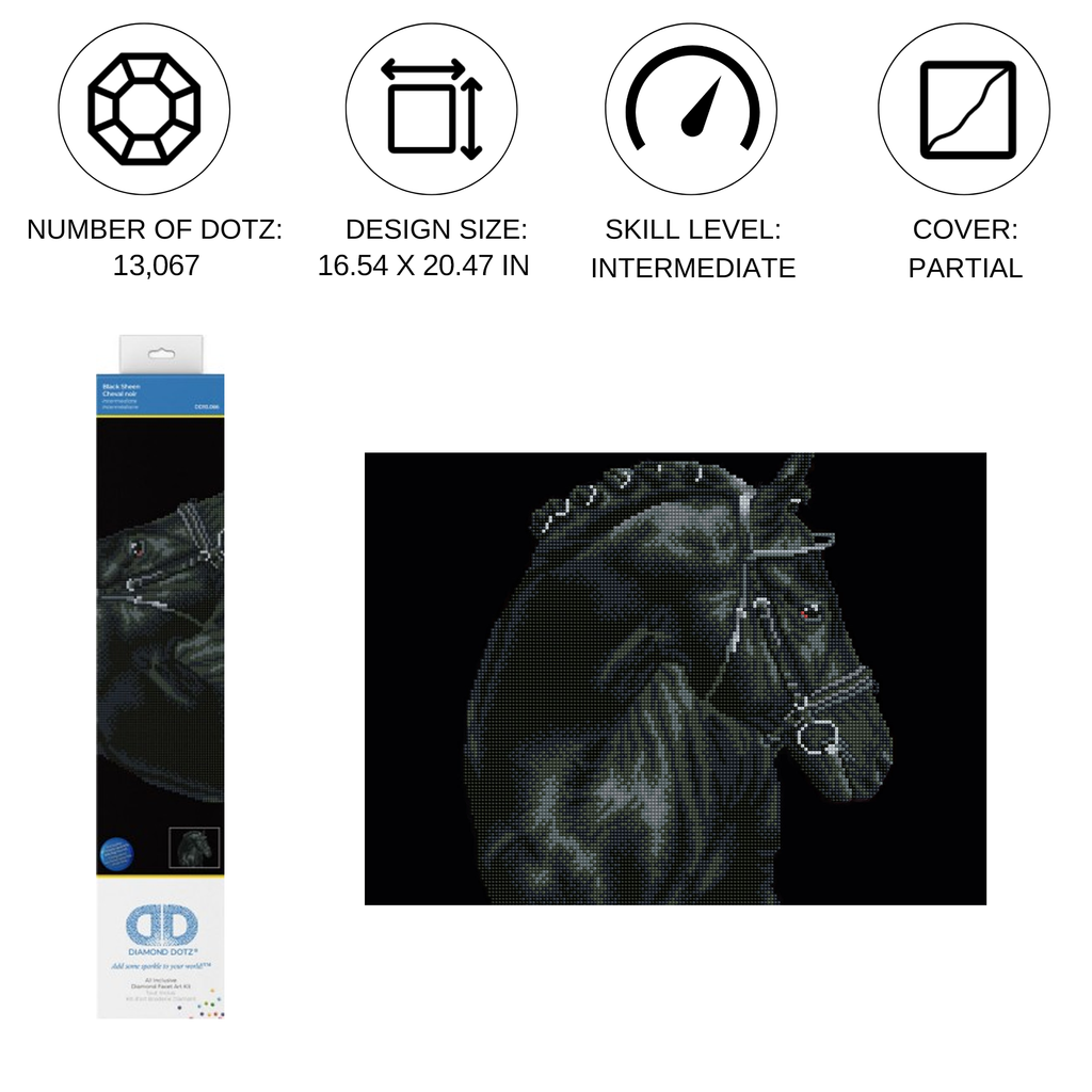 Diamond Dotz Black Sheen - 16.5" x 20.5": Elegant and powerful Black Sheen captures the sleek beauty of a dark stallion in motion. With its flowing mane and subtle highlights this diamond painting brings out the strength and spirit of the horse in stunning detail. The rich tones and full-coverage design make this a perfect centerpiece for horse lovers and diamond painters alike. Ideal for anyone who enjoys Diamond Painting Kits for Adults Diamond Art Kits horse diamond art horse diamond painting diamond art horse and diamond painting kits horses.