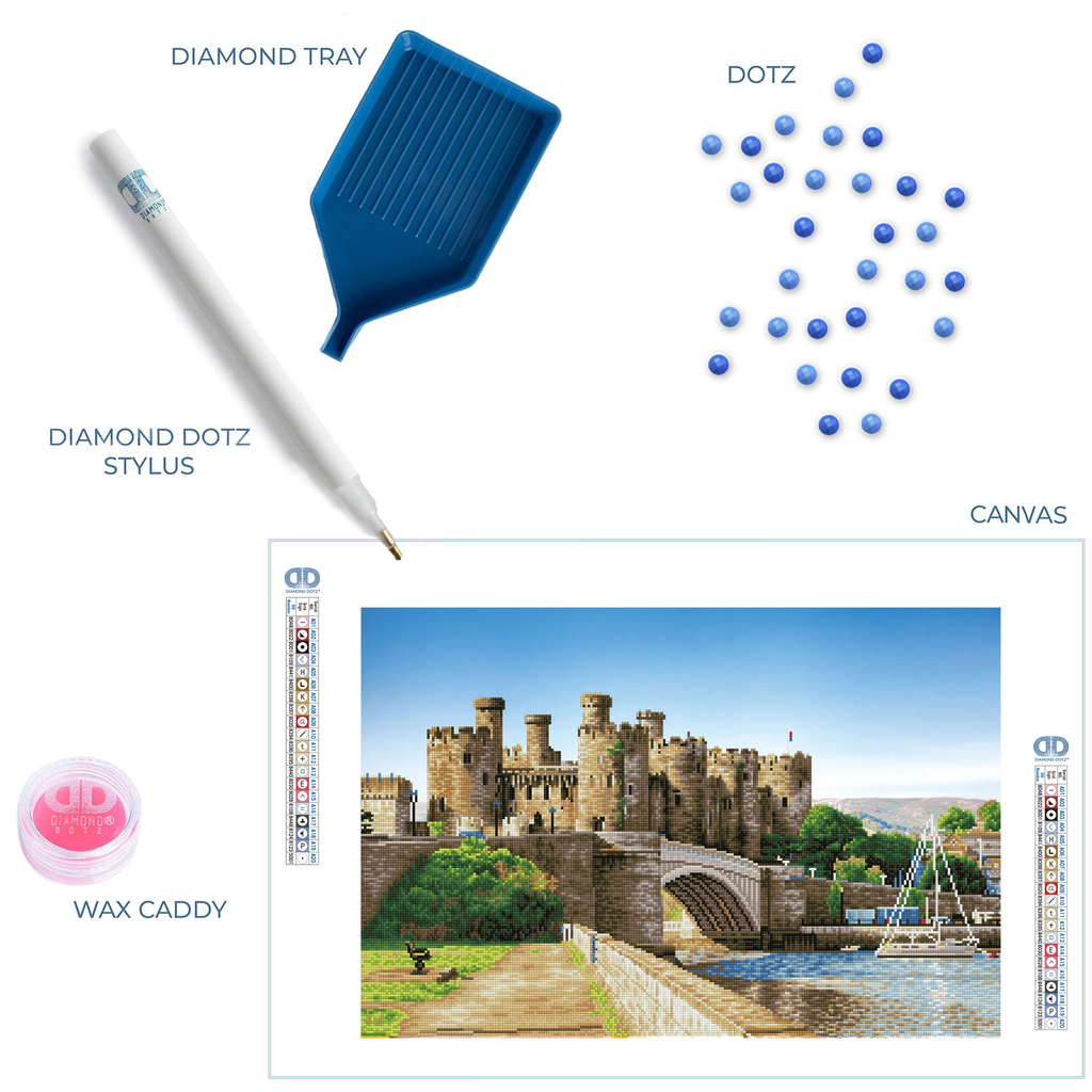 Diamond Dotz Conwy Castle Wales - 29.5" x 19.7": Step back in time with the Conwy Castle Wales Diamond Painting Kit a majestic fortress scene perfect for fans of Diamond Painting Kits for Adults. With its towering stone walls iconic bridge and tranquil marina view this diamond painting travel project offers both challenge and charm to those who love historic landscapes and travel diamond art.