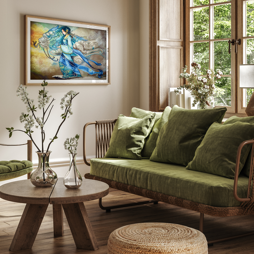 Diamond Dotz Dragon Princess - 33.5" x 26.4": Channel strength and serenity with the Diamond Dotz Dragon Princess Diamond Painting Kit. Inspired by the fantasy world of mythical guardians this mesmerizing design showcases an elegant princess adorned in flowing ocean-blue robes accompanied by the ethereal form of a shimmering dragon. Ideal for lovers of fantasy art and Diamond Painting Kits for Adults this piece brings together grace and power in a breathtaking celestial setting.