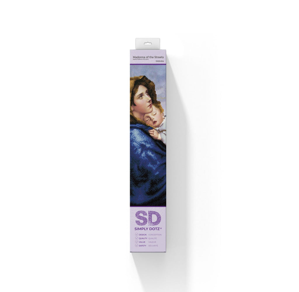 Diamond Dotz Madonna of the Streets apres Roberto Ferruzzi - 14.6" x 20.3": Explore the divine beauty of the Madonna of the Streets Diamond Painting Kit. This exquisite religious diamond art kit for adults captures the essence of devotion through the soft hues and intricate design of Madonna holding the Christ Child. Create a shimmering work of art that will add grace to your collection.