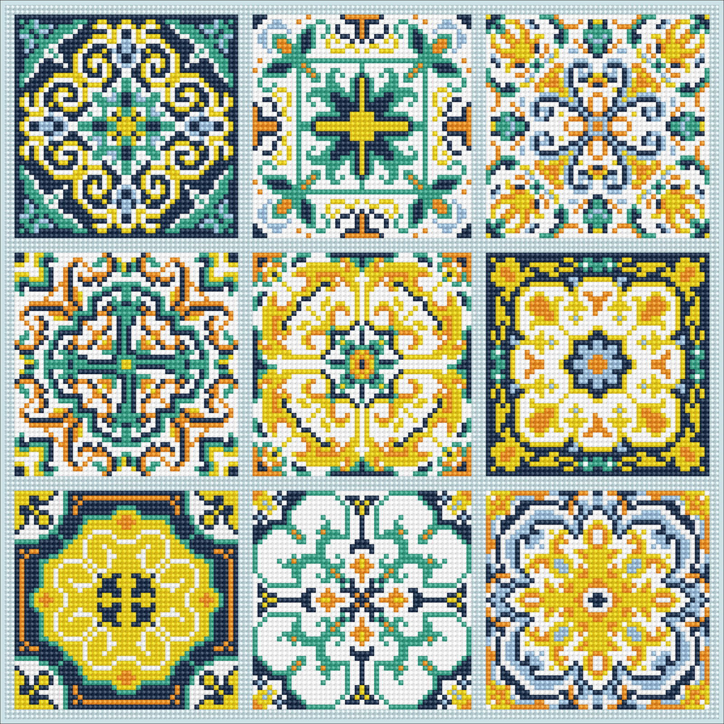 Infuse your space with vibrant energy using the Diamond Dotz Mesmerising Tile kit a stunning mosaic of intricate patterns inspired by traditional ceramic tiles. This eye-catching abstract diamond painting features nine beautifully designed panels in golden yellows cool greens and deep navy blues. With partial coverage and sparkling round Dotz this intermediate-level project delivers both detail and satisfaction. A true gem in the world of Diamond Painting Kits for Adults and Diamond Art Kits it’s ideal for those who love color symmetry and a bit of dazzle.
