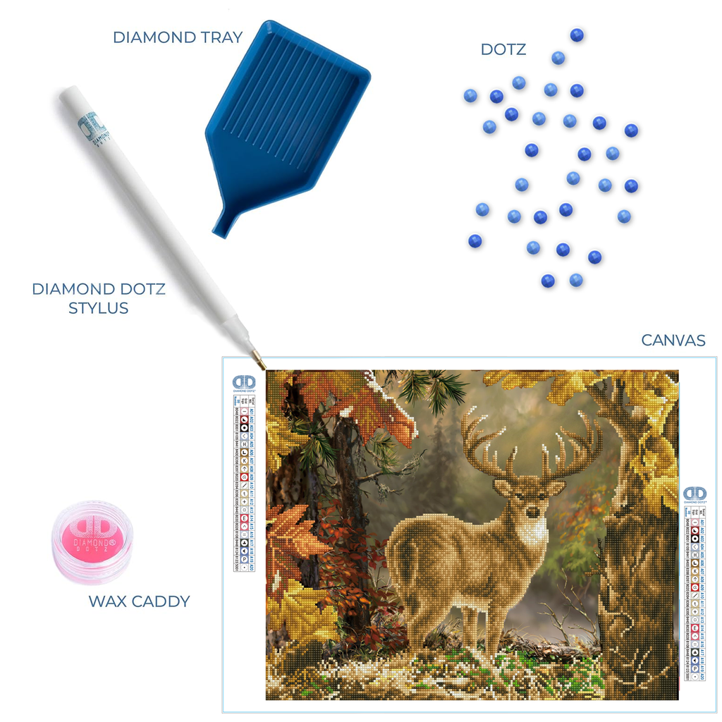 Diamond Dotz Prince of the Forest features a majestic buck standing proud among autumn trees in a golden forest glow. With 14 581 Dotz partial coverage and round diamonds this elegant scene brings nature’s royalty to life. It’s a perfect fit for fans of Diamond Painting Kits for Adults Diamond Art Kits diamond art kits for adults diamond painting animals diamond art animals and animal diamond painting.