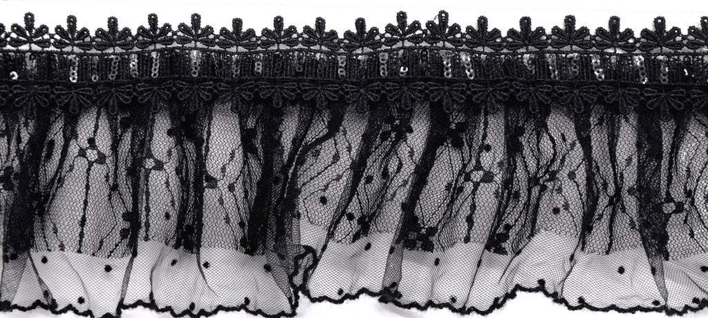 Belagio Enterprises - 3 1/2" Width Doubled Gathered Lace (10 Yard Roll) - BRL-802-02 Black
