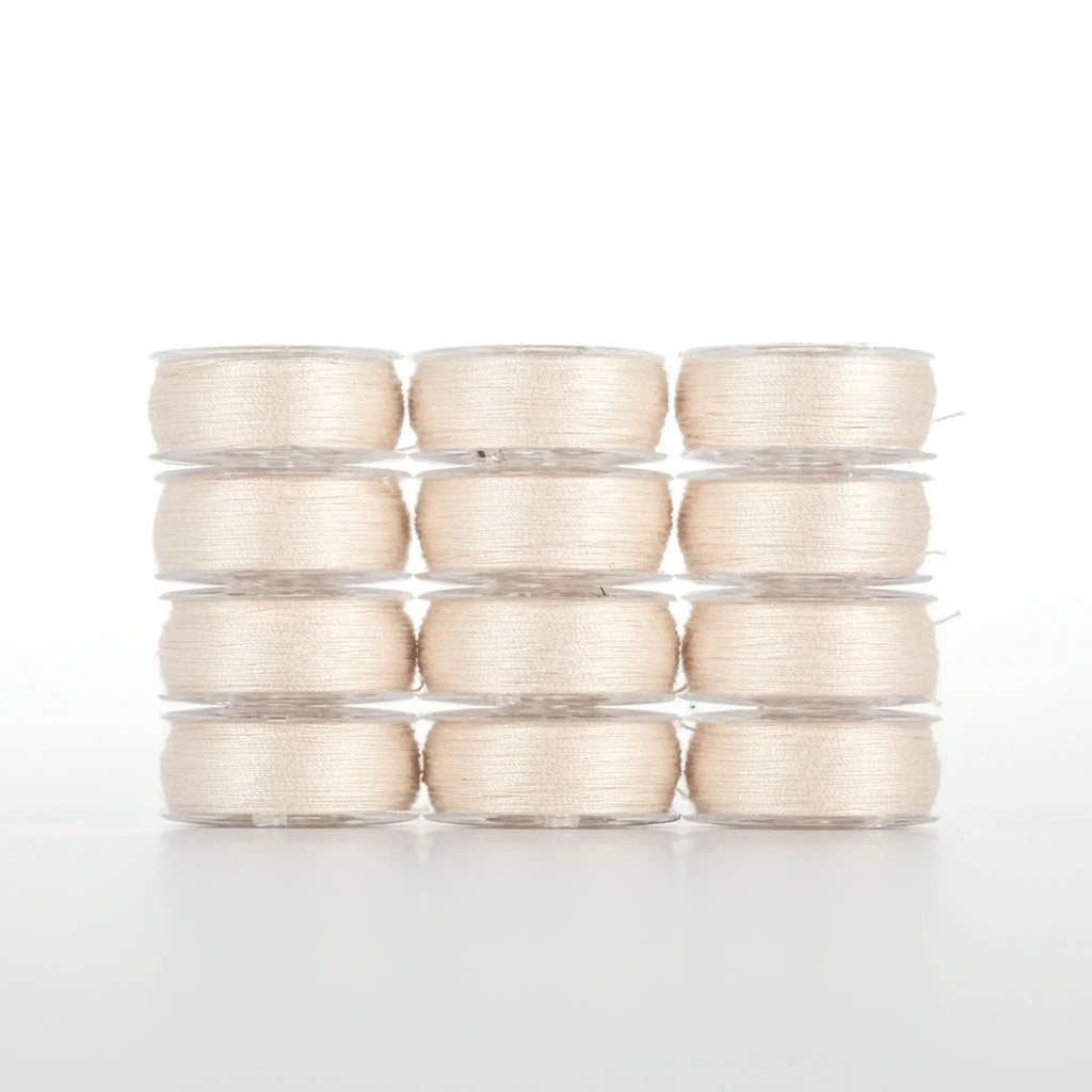 Dream Seam Class 15 prewound bobbins are the premier 50 wt. 2-ply cotton thread for piecing, quilting, and sewing projects. Made from extra-long staple Egyptian-grown cotton, it offers unparalleled consistency and quality. Available in 18 solid colors, each Class 15 bobbin is wound with 80 yds. Dream Seam ensures every stitch is precise, making your seams and quilt tops look flawless every time.