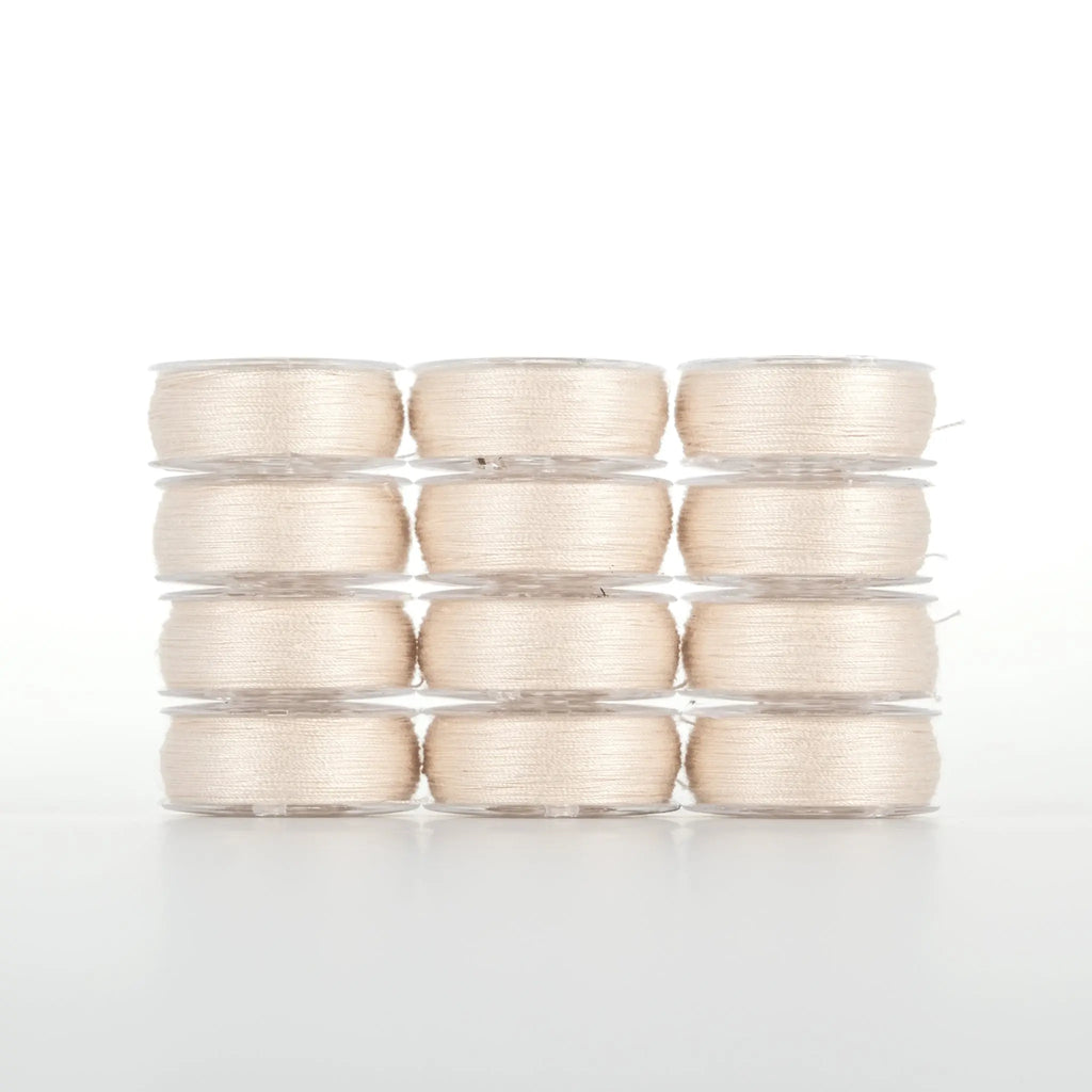 Dream Seam L style prewound bobbins are the premier 50 wt. 2-ply cotton thread for piecing, quilting, and sewing projects. Made from extra-long staple Egyptian-grown cotton, it offers unparalleled consistency and quality. Available in 18 solid colors, each L style bobbin is wound with 70 yds. Dream Seam ensures every stitch is precise, making your seams and quilt tops look flawless every time.