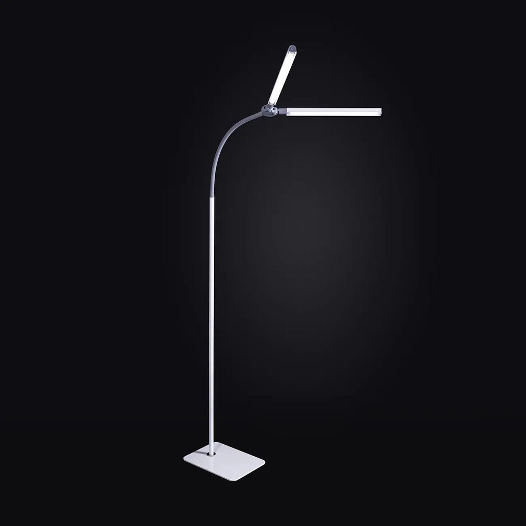 Double your brightness with the DuoPro Floor Lamp. This bright and flexible lamp offers two shades enabling a larger illuminated area for you to work with ease. Use the individually pivoting head joints and soft touch flexible arm to direct the light exactly where you need it. Adjust the brightness on each shade to help you see details and colors clearly with the lamp’s high quality daylight LEDs and 95+ CRI