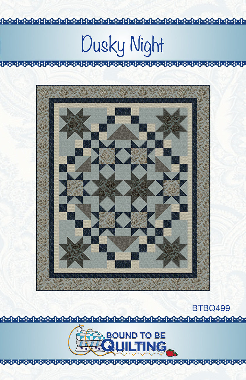 We've taken the Dark and Stormy collection by Maywood Studio and created a "Dusky Night" with stars and chains. A masculine looking quilt, but this pattern could be switched up with any collection to make it bright. Finished size is 72" x 86". Skill level is confident beginner