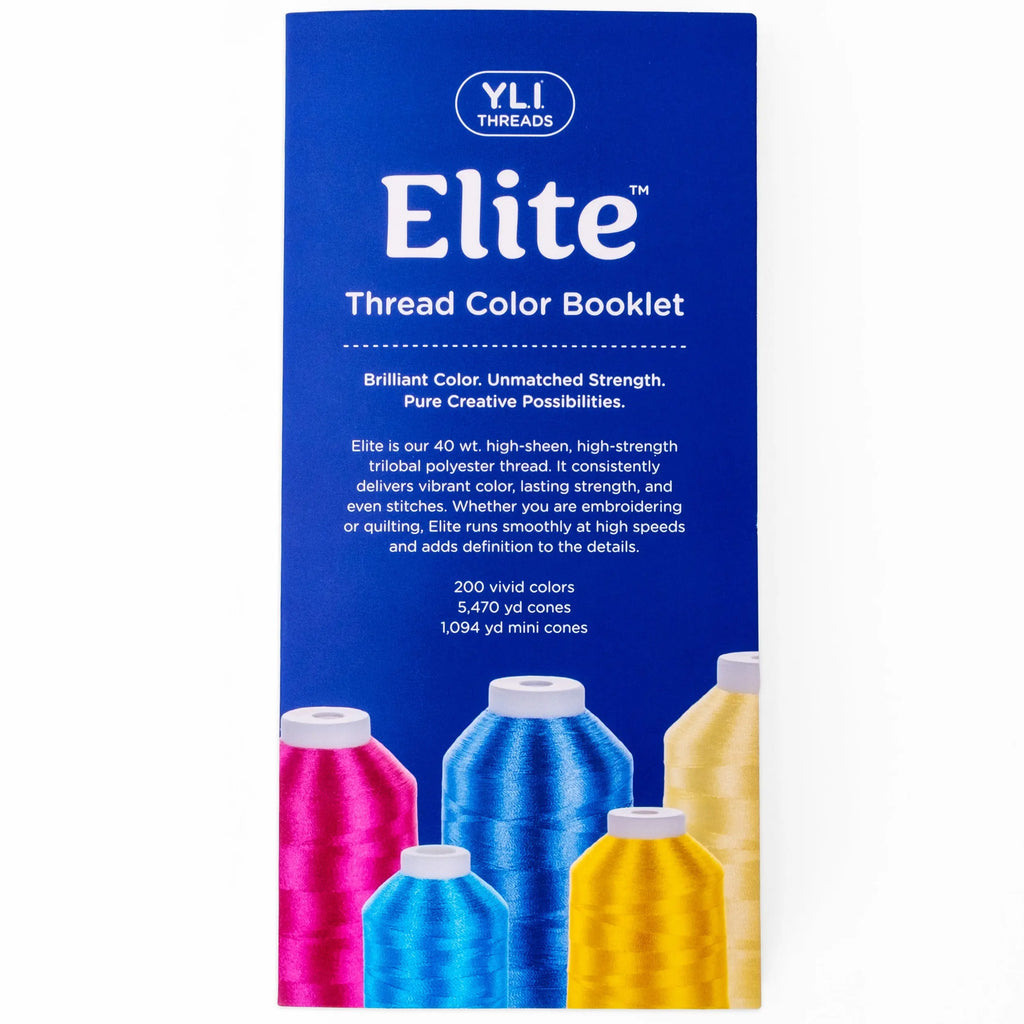 Our Elite Thread Color Booklet contains real thread swatches for all 200 colors of Elite 40 wt. embroidery and quilting thread.