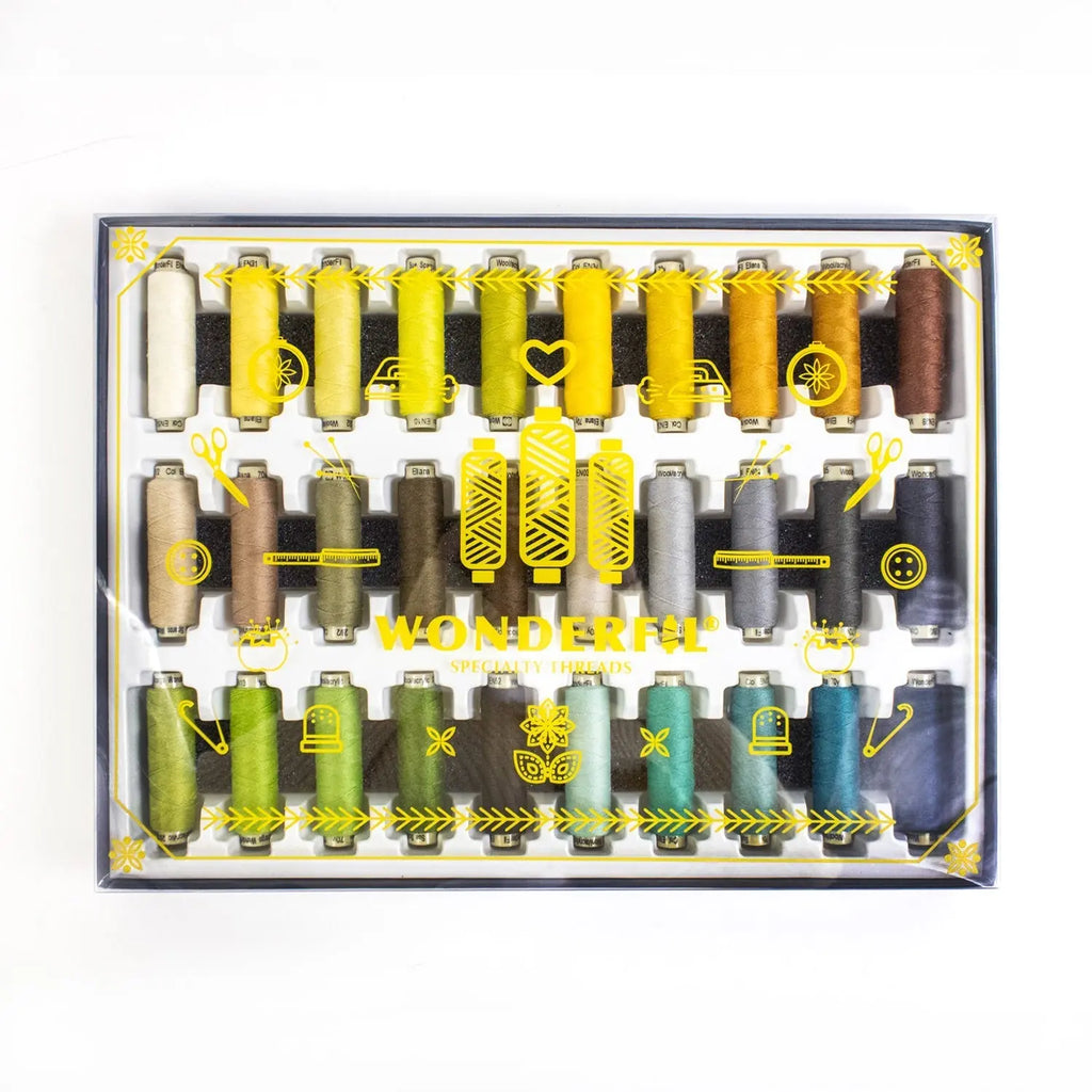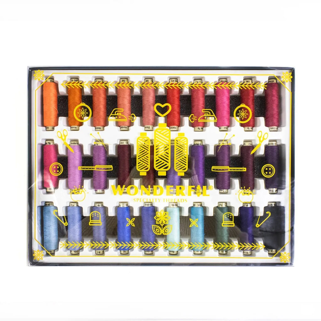 Own Ellana’s full collection of 60 colors and save money instead of buying individual spools. With colors designed by Sue Spargo, they are dyed to perfectly match Sue’s Efina™ Giza cotton thread and wool fabric lines so that projects can easily be coordinated. This full collection includes Ellana™ wound with 150m (164yd) spools.