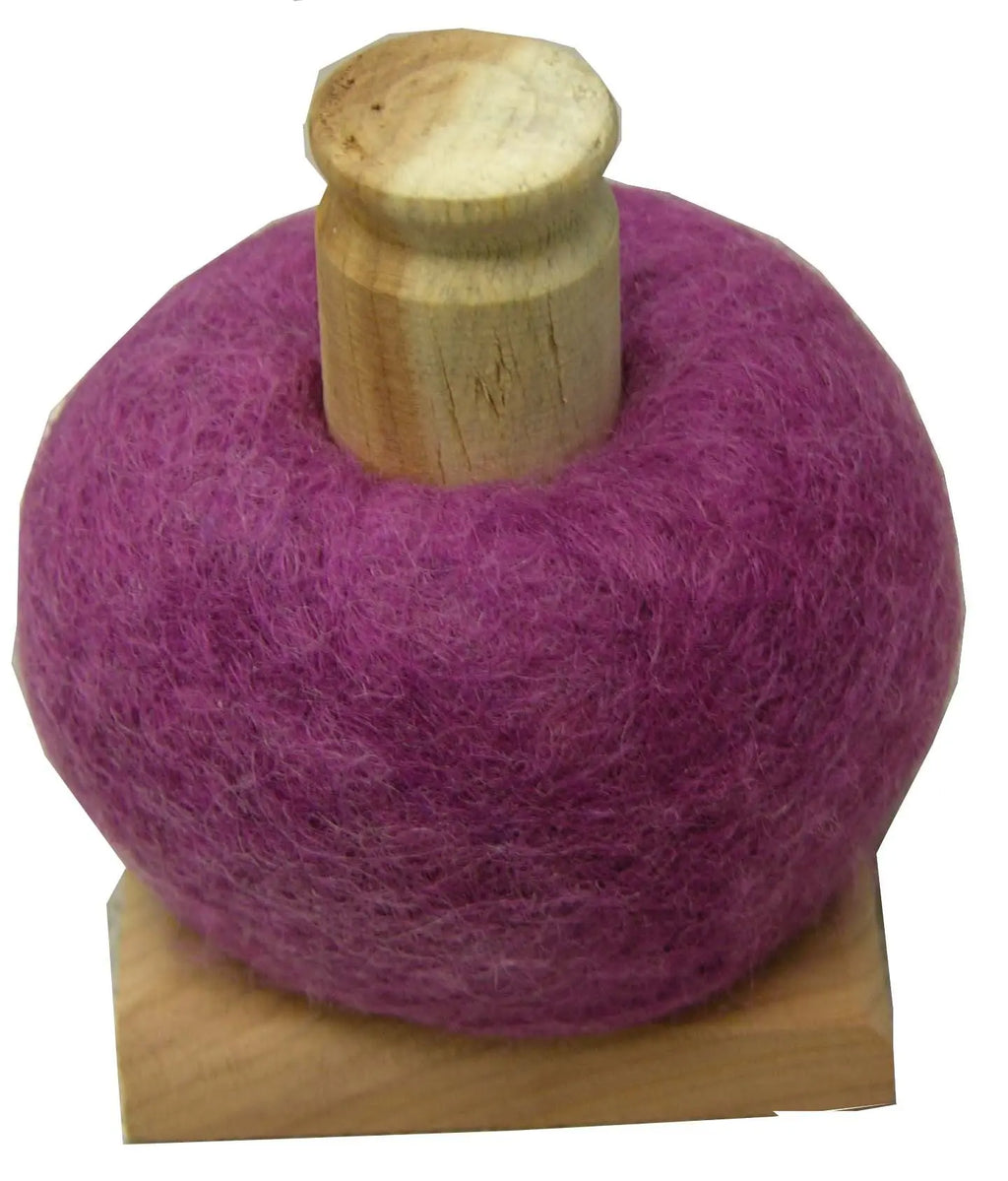 The Ewe Baby continues to be a favorite as its small size fits in the smallest of sewing spots. Made of felted wool using red cedar for the knob and its base. (Red cedar repels moths.)