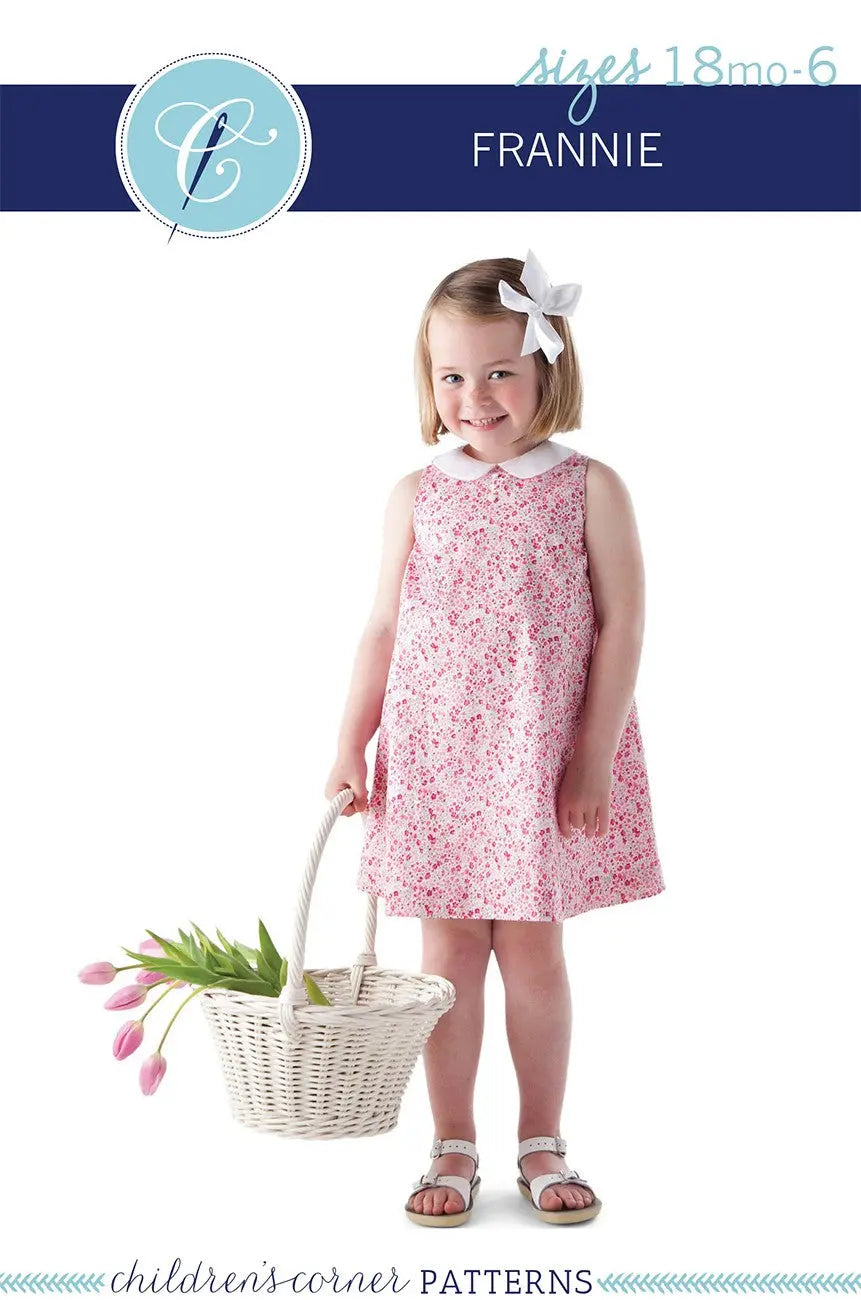 Frannie is a swing sundress perfect for everyday play and can be worn as a jumper for cooler weather. Adjustable fullness gathered under the arms can be made with fabric ties or elastic. The fully-lined dress has one button in the back with an optional Peter Pan collar. Sizes 18mo-6 in one package.
