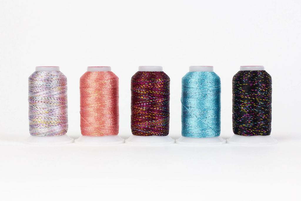 With contrasting strands of rayon woven with one strand of metallic, this stunning new thread will add the wow-factor wherever it’s stitched! Available in bold colours designed to show off, GlaMore™ is perfect for adding a little bit of texture and shimmer. Thin enough to fit through the eye of a sewing machine needle, but thick enough to stand out, use it to embellish any project where you want the stitching to be the star.
