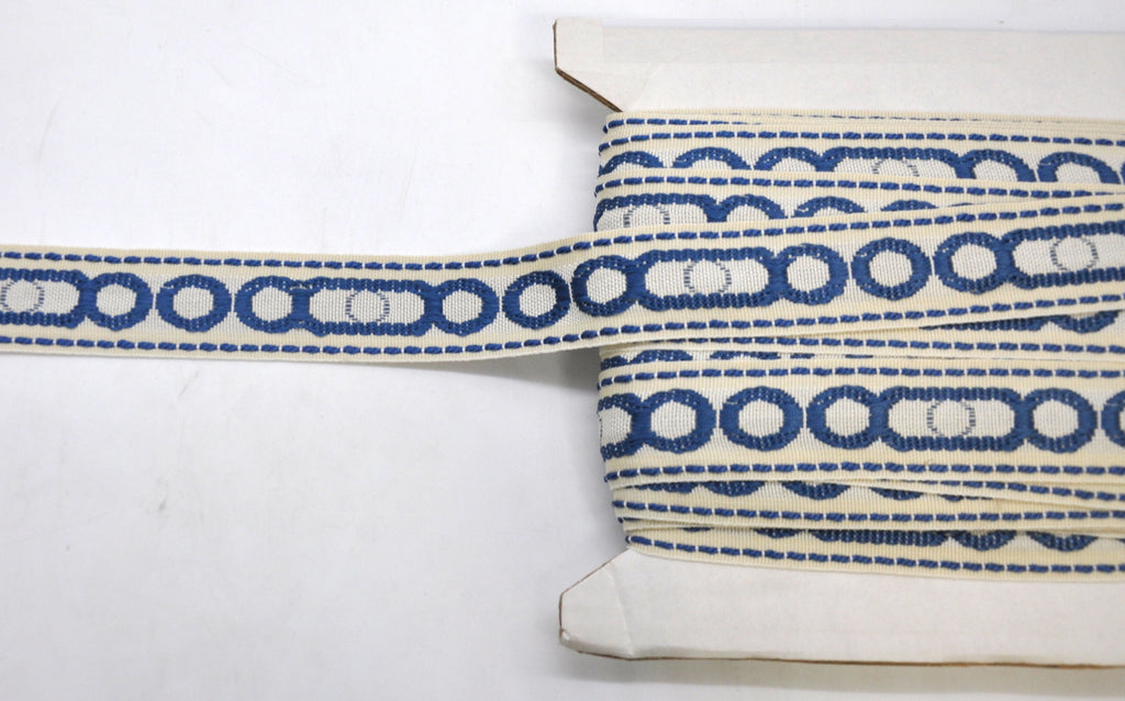 Godiva Collection - 1 1/2" width CIRCLE PATTERN BRAID (25 Yard Roll) - BR-7097-05/24 Navy Blue and Ivory