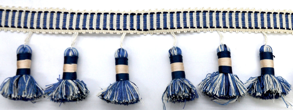 Godiva Collection - 4" length-LARGE TASSEL FRINGE- Navy Blue and Ivory