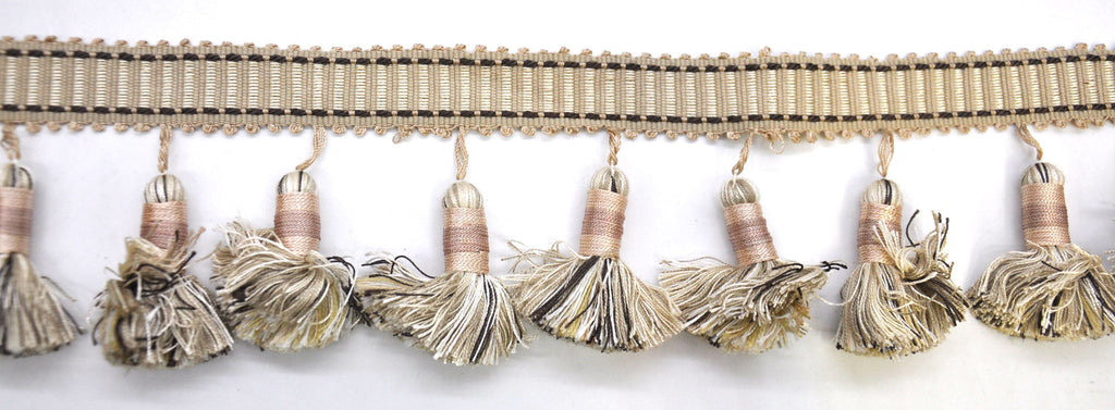 Godiva Collection - 4" length-LARGE TASSEL FRINGE- Beige and Chocolate