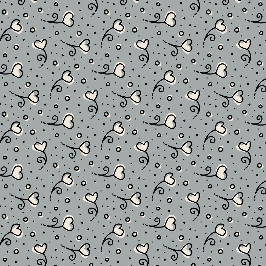Gray Heart Blossoms Love Ink 3384 Cotton 44”/45” Fabric Per Yard