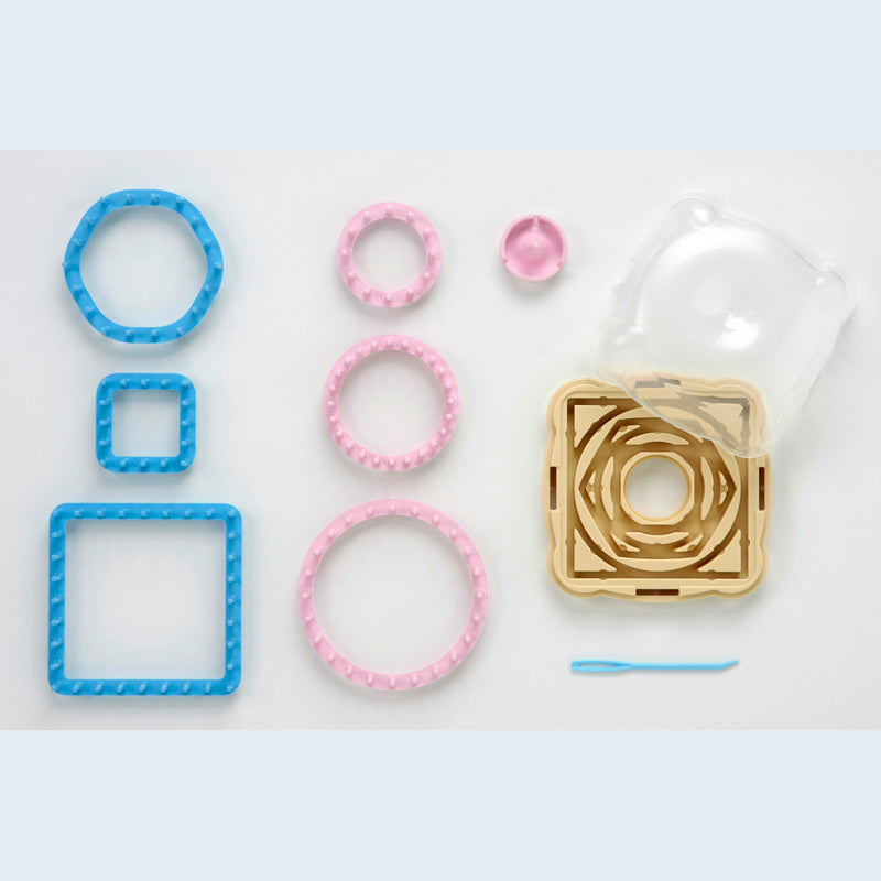 Easy-to-use loom creates flowers for round, square, and hexagonal designs. Create flowers with your favorite material: yarn, ribbon, fabric strips, raffia, twine, jute and threads.