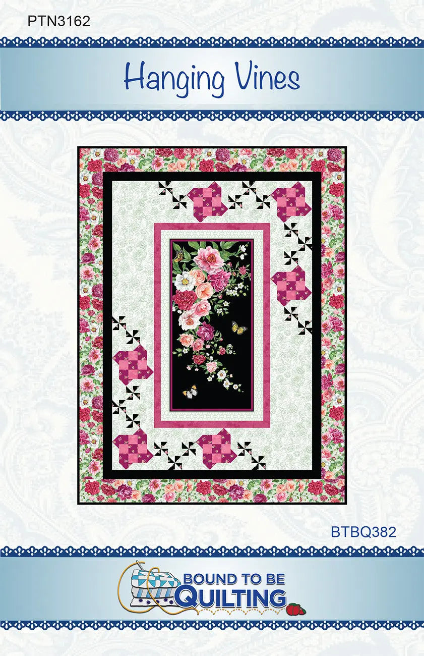 Cleverly placed quilt block “flowers” and pinwheels create the illusion of hanging vines on the sides of this 24” panel from the Blush collection by Northcott
