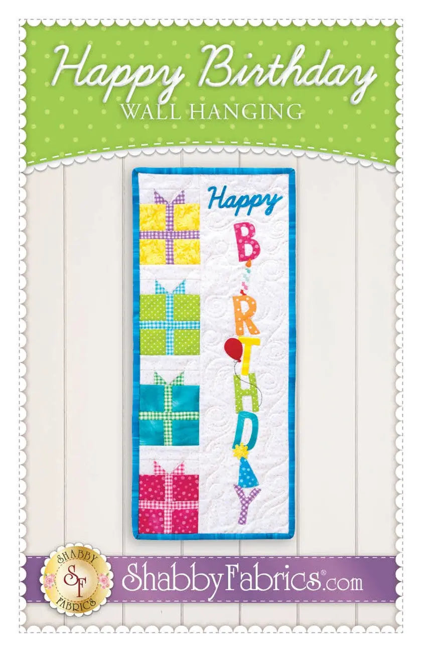 Happy Birthday Wall Hanging: Pieced gift boxes and appliqued greetings will add a festive touch to your family celebrations year after year! Finishes to 10½" × 24½"