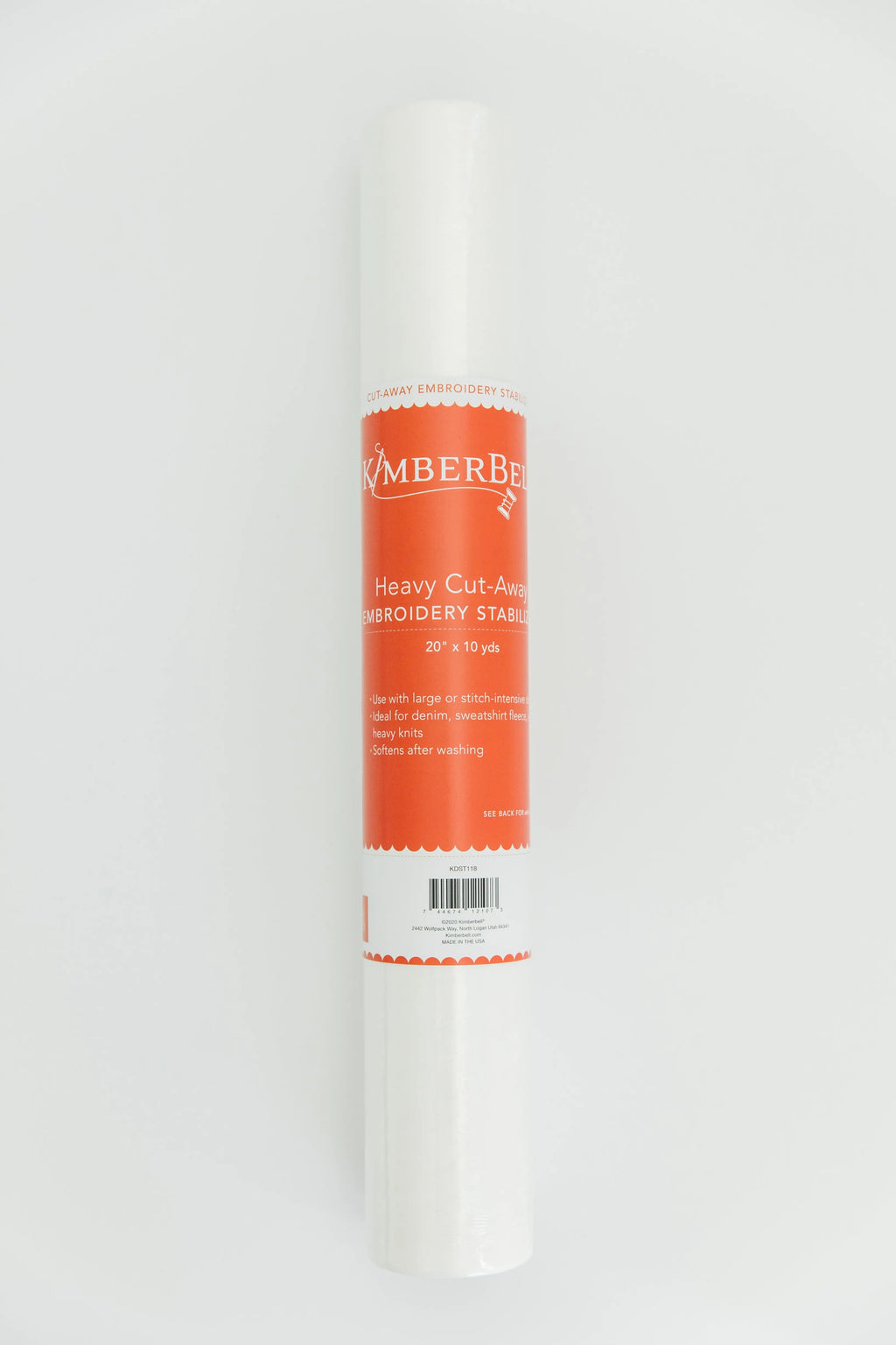 Kimberbell Cut-Away is ideal for stitching dense designs on wovens, knits, stretchy fabrics, and other projects needing permanent reinforcement. After embroidering, trim excess Cut-Away from design with scissors.