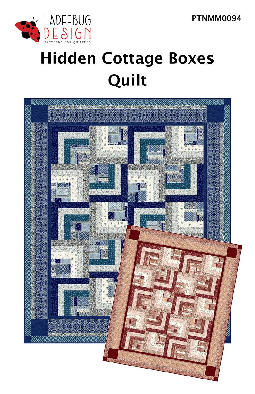 Features Michael Miller's Cottagecore collection. Finished size: 65" x 77". Beginner Friendly - straight cuts and seams, and no seam intersections. This quilt uses 1-sided log cabin blocks that are laid out to create an optical illusion of boxes behind boxes. The block centers could be fussy cut from the big print fabric. The 2 outside borders feature sections of the border print, leaving very little to waste.
