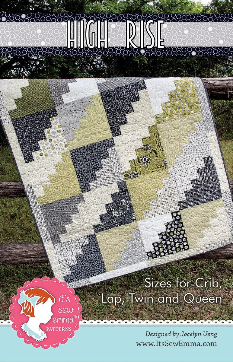 Everything is on the up and up with the High Rise quilt! The good old log cabin quilt block is elevated with a playful border. This pattern is Jelly Roll strip friendly and available in four sizes.