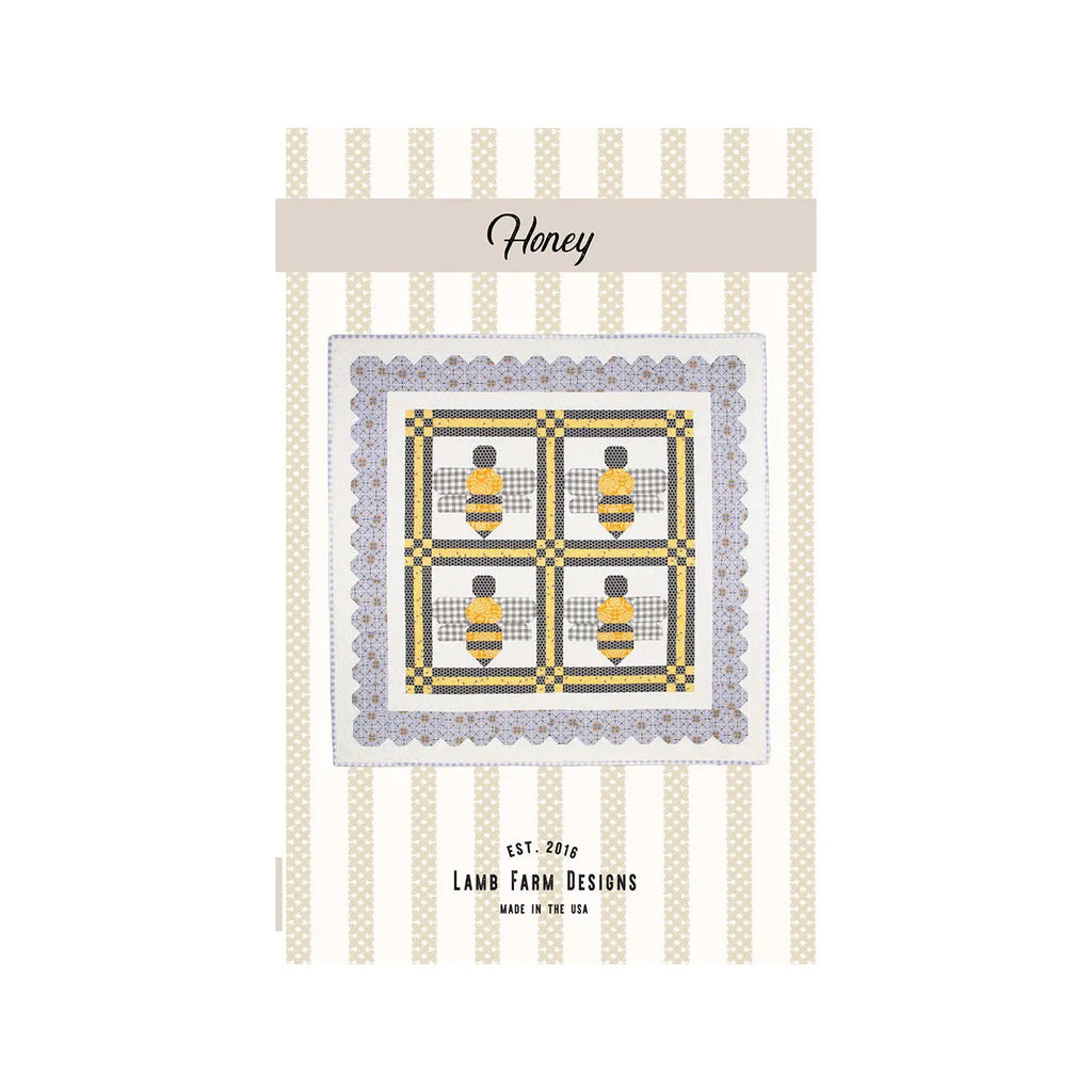 A traditionally pieced lap quilt or wall hanging. Who doesn't love a bee quilt? Great for a shower gift, a kid's room or just to throw on the back of your couch to add a touch of whimsey to your decor. Quilt measures 48" square and is based on four bee blocks with pieced sashing and cornerstones and a pieced border to really make this quilt stand out! Step-by-step directions written for the intermediate sewist.