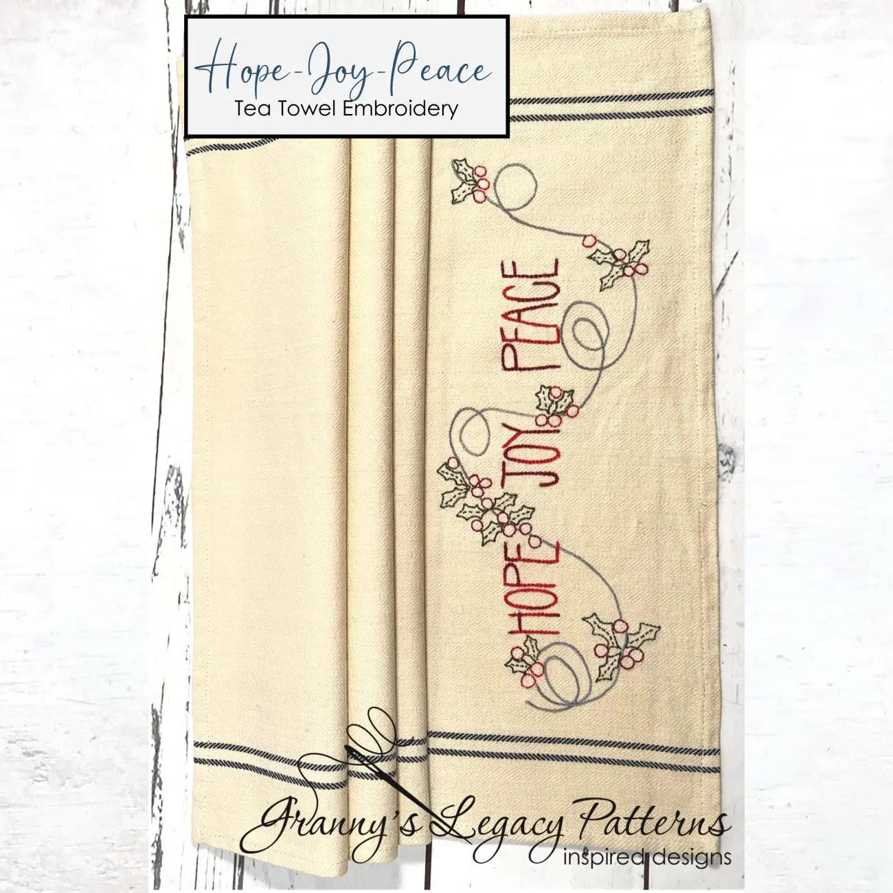 This fun embroidered dishtowel pattern features full size, color text/line drawings making stitching and transfer a breeze! Finished towels are fun to display seasonally and gift!