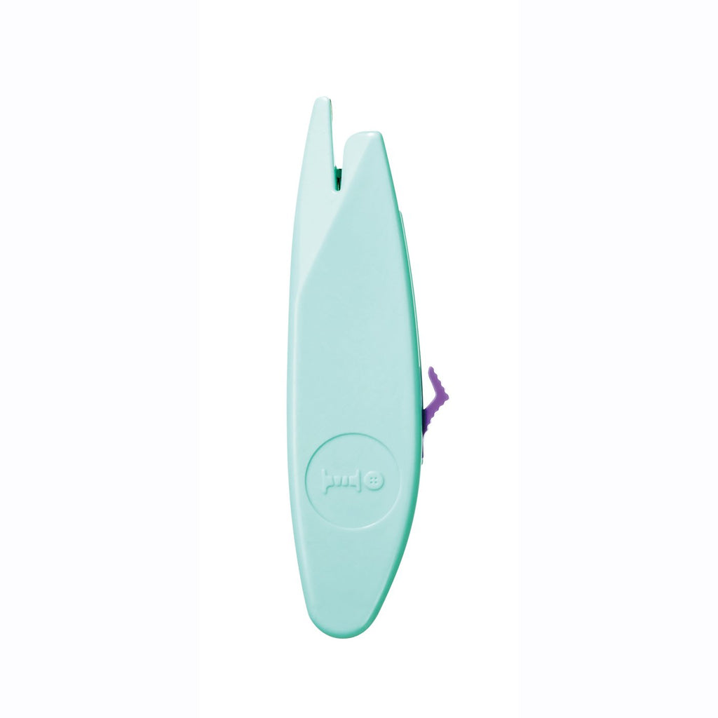 - To use as a thread cutter, slide button back and use with b;ade tip stored