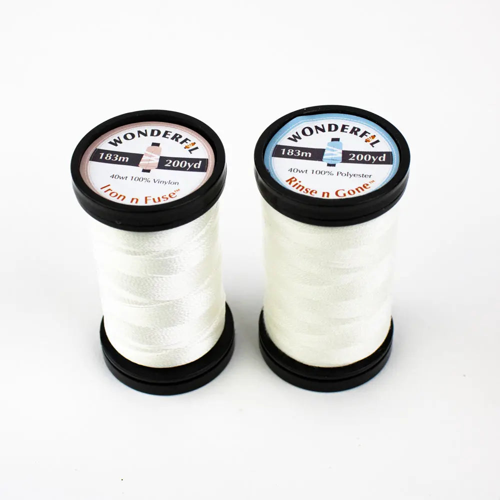 Use this practical thread in the bobbin for applique, lining up corners and matching up patterns, binding, and zippers. The heat of an iron will fuse layers of fabric together, holding it in place so you can perfect your project. Then simply pull the top thread out!