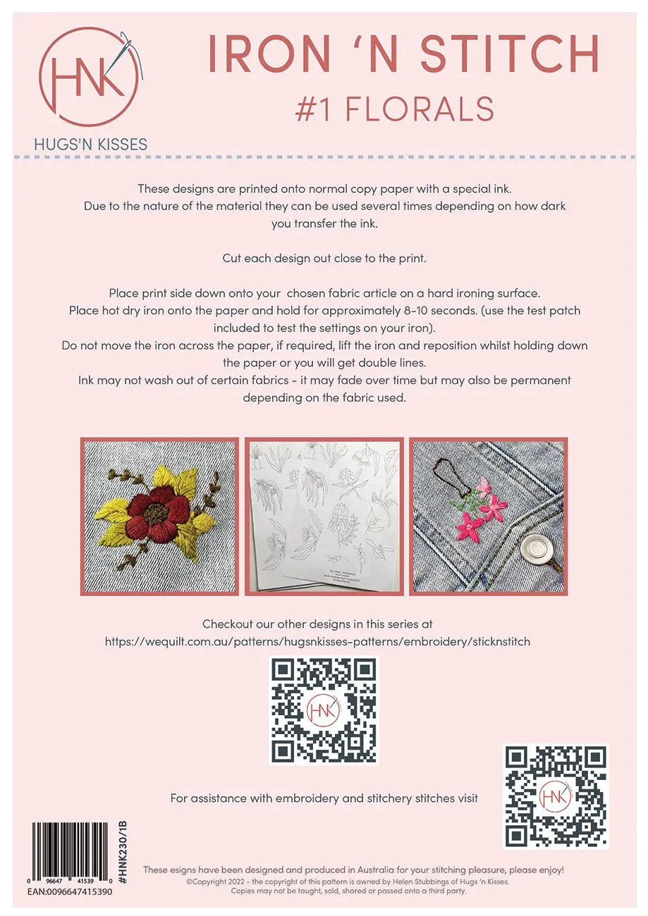 Iron N Stitch - designs printed onto normal paper using a special ink - will transfer to many fabrics using a domestic iron - up to 3 uses per print. Great for flat items and fabrics such as shirts, aprons, quilt blocks, linen fabrics and more.