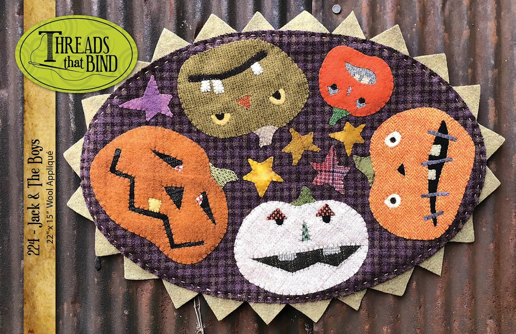 22" x 15" wool applique. This oval wool appliqué mat will be sure to bring laughter and fun into your fall home decor.