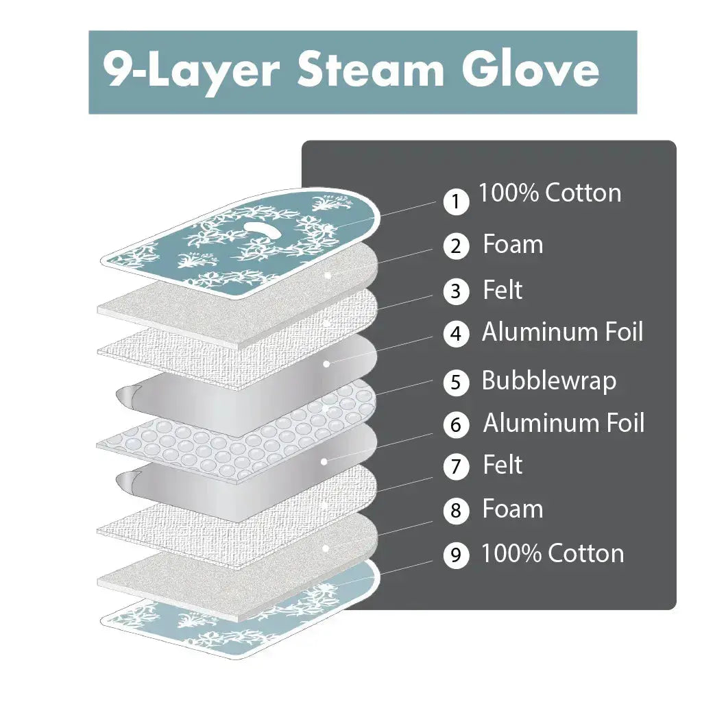 - Glove layers: 100% cotton exterior surrounding 2 layers each of foam, felt, aluminum foil and bubble wrap