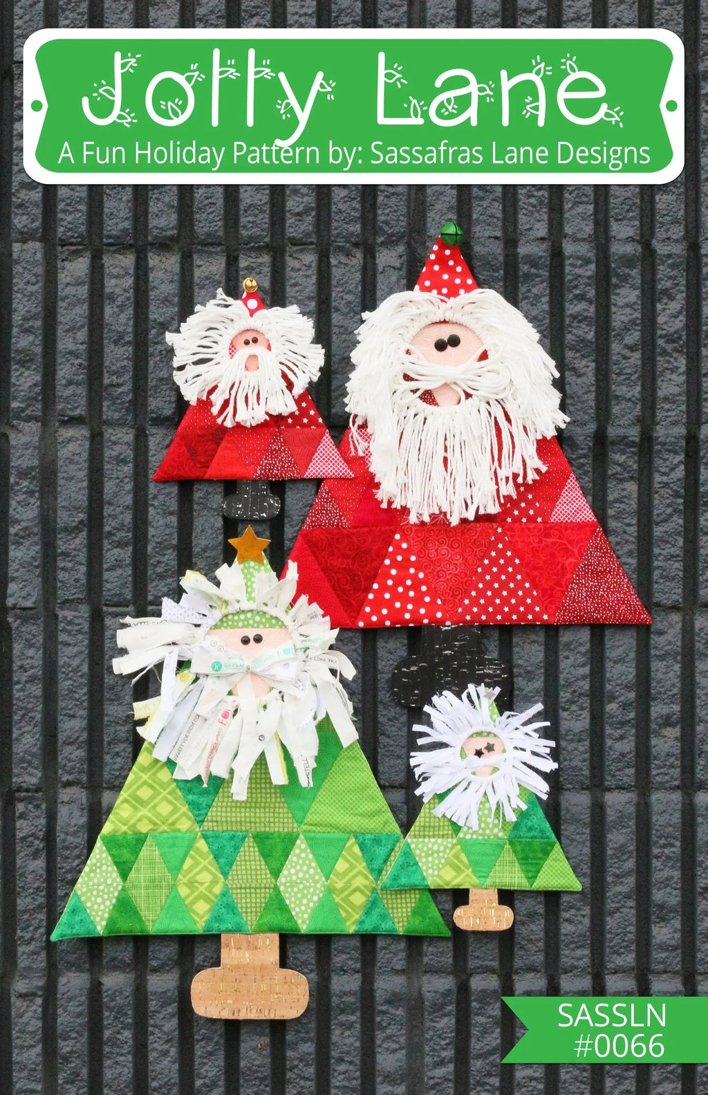 Jolly Lane: This silly 3D Santa Claus and Christmas Tree are the perfect decorations for your holiday celebrations. Patter includes instructions for both projecsts in two sizes and two beard rings. One of each size is needed. Simple, scrappy triangle construction make this project quick and great for using up scraps. Perfect for an easy holiday class.