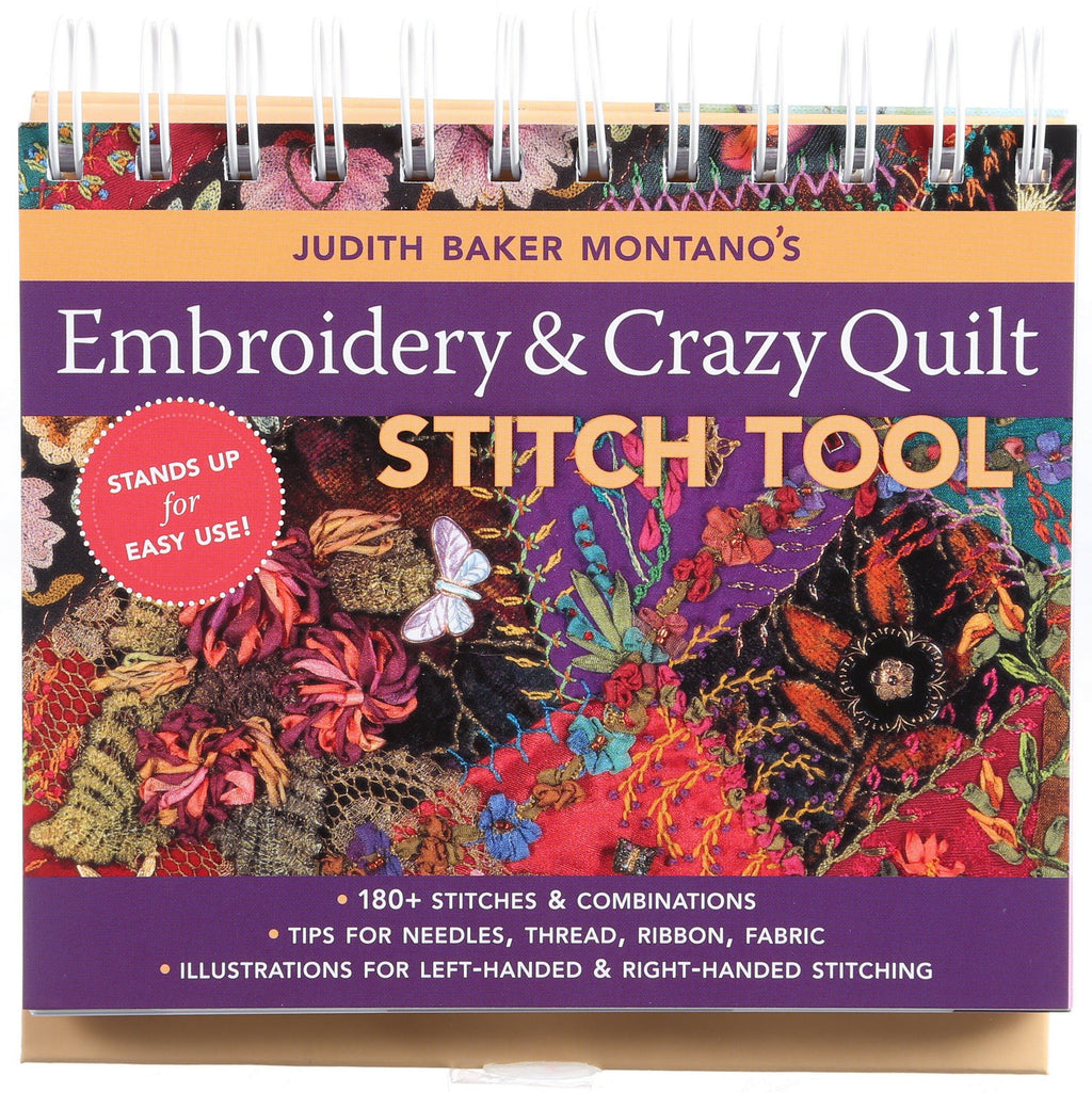 Judith Baker Montanos Embroidery & Crazy Quilt Stitch Tool: Must-have reference guide for hand needlework. Fiber artist Judith Baker Montano is back with this handy little reference guide that belongs in every needleworker's sewing basket. You can always find the perfect stitch for your project, with dozens of flat, linked, cross, looped, composite, floral and silk ribbon stitches to choose from. More than 180 stitches & stitch combinations for hand embroidery, silk ribbon embroidery and crazy quilting. Beautifully illustrated in full color for both left & right hand stitchers.
