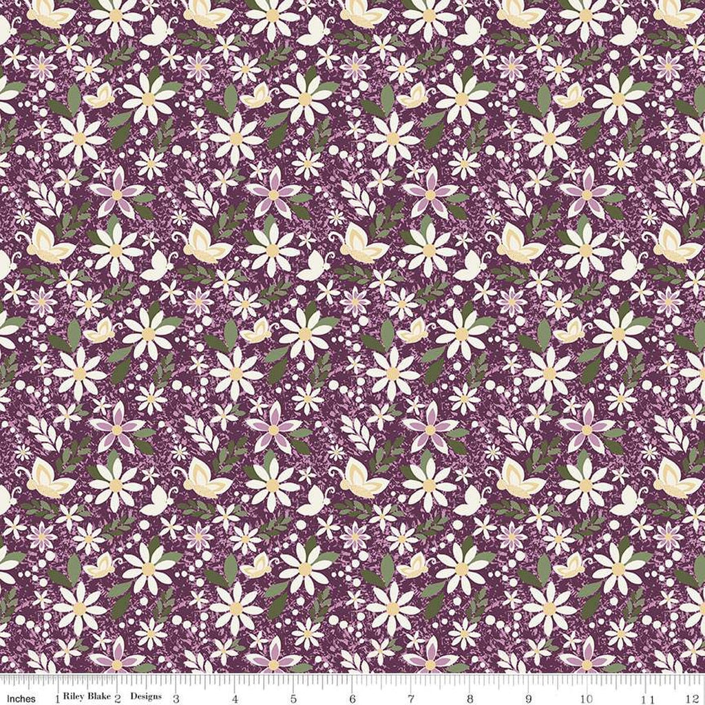 Juju's Petals Dance Purple Cotton 43"/44" Fabric Per Yard: