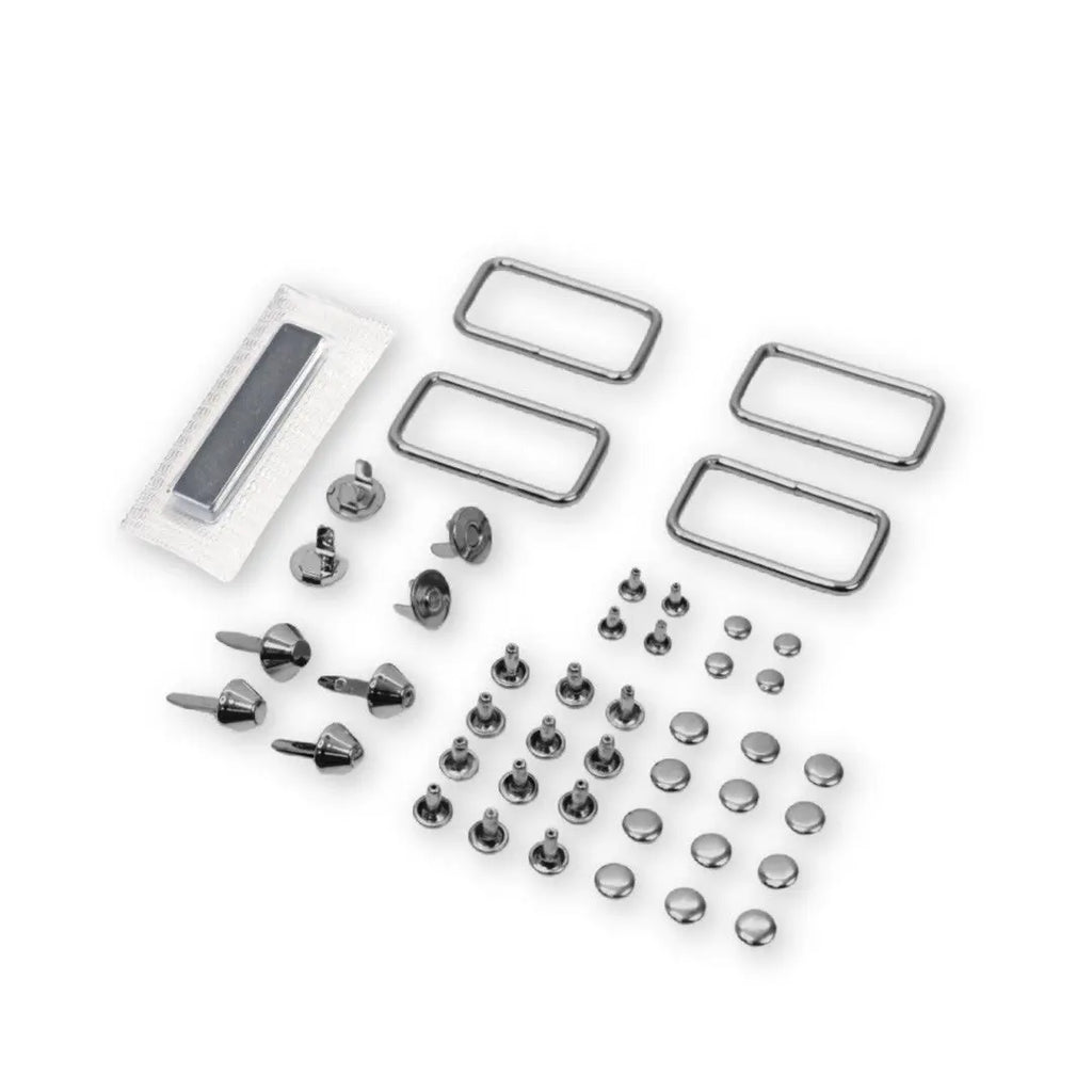 We've made it easy for you by putting together a professional-looking Hardware Kit for the Katye Bag! All of the necessary pieces of hardware to make one Katye bag are included in one kit. Included in Hardware Kit: (4) Domed Purse Feet, (2) 1/2" Magnetic Snaps, (1) Invisible Magnetic Sew-In Bar, (4) 1-1/2" Rectangle Rings, (4) Small Rivets, (12) Medium Rivets.