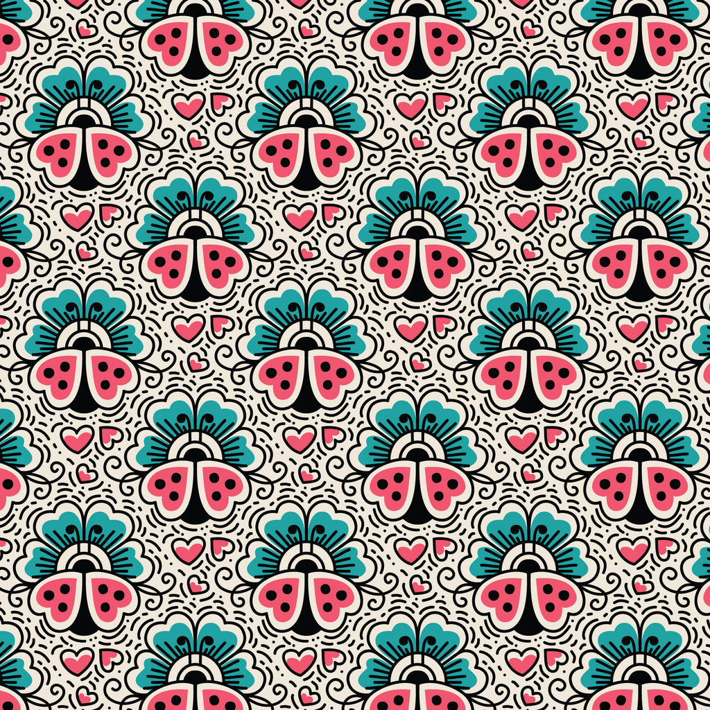 Ladybugs and Flowers Love Ink 3387 Cotton 44”/45” Fabric Per Yard