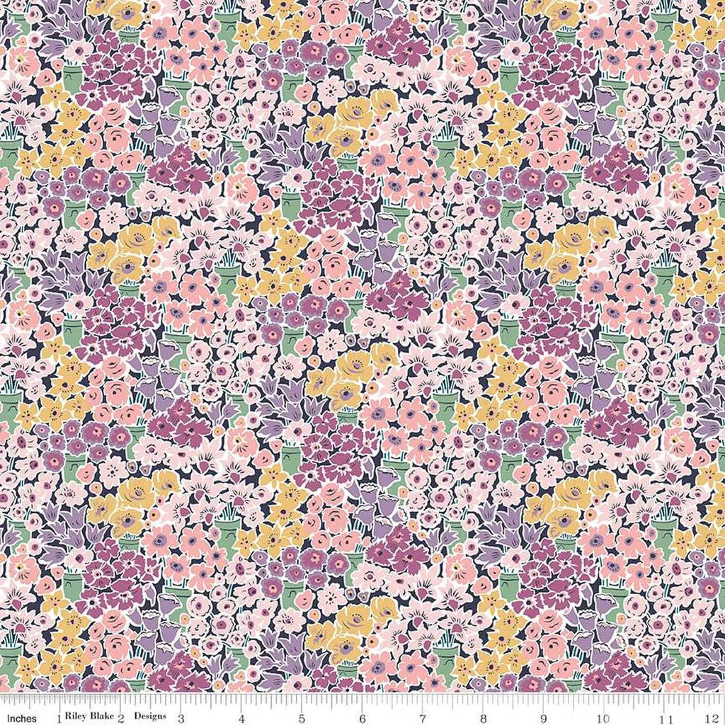 Liberty Fabrics are traditionally screen printed onto soft Lasenby cotton. This base is suited for craft projects, apparel, and classic patchwork quilting. The possibilities are as endless as your imagination. Drawing inspiration from a curated selection of 1930s-style archive botanicals, Rossellie Blooms stands as a heartfelt tribute to Liberty’s world-famous flower shop. Dense clusters of loosely painted roses, daisies, lilies, tulips, and anemones are artfully arranged in charming florists’ buckets, evoking the ambiance of the iconic store’s main entrance on Great Marlborough Street.
