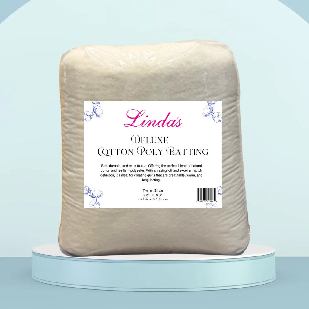 Linda's Cotton/Poly blend batting is easy to work with, as it provides a great loft, which means that the batting is the perfect thickness, making it easy to handle during quilting. This batting also has a consistent loft throughout the quilt, which means that the finished product will have an even thickness and appearance.