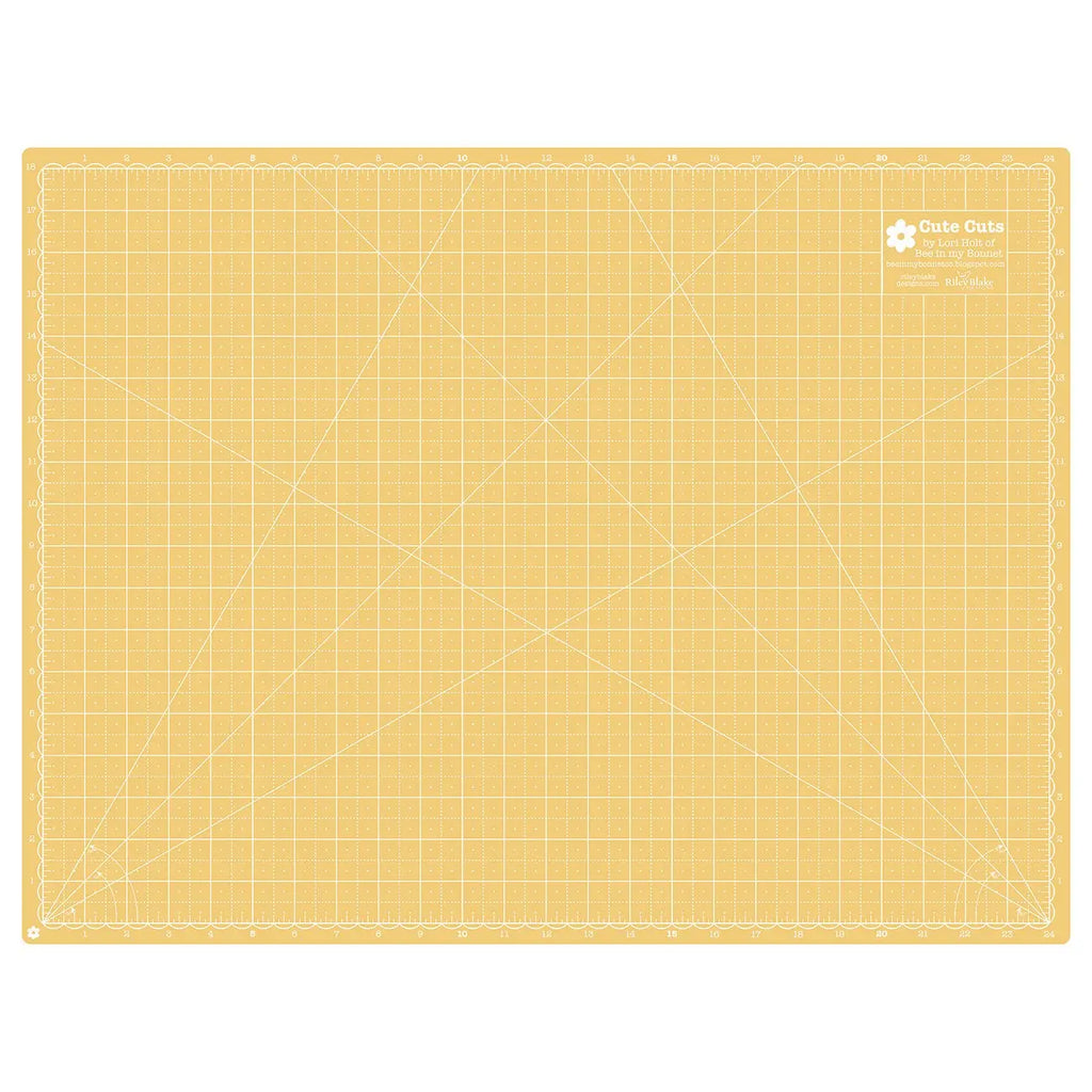 Lori Holt of Bee in my Bonnet has designed this 18in x 24in Reversible Cutting Mat. It is perfect for quilting and general use. This cutting mat has triple layers, is self healing and has grids on both sides for a longer life. Marked in inches only. Colors are tea rose and honey.
