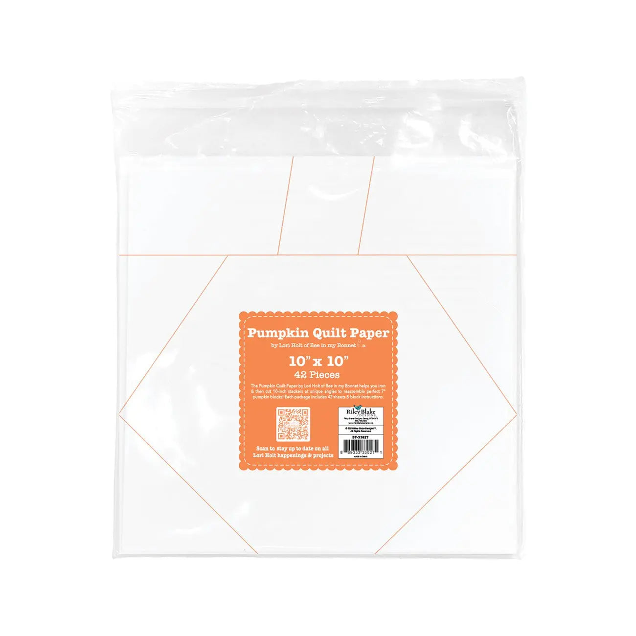 The 10" Pumpkin Quilt Paper by Lori Holt of Bee in my Bonnet is iron-on paper that helps you cut out pumpkins from 10-inch stackers at unique angles to reassemble as a fun 7" finished Pumpkin Quilt Block. Each package includes 42 sheets. These papers are needed to make Lori's Pumpkin Paper Quilts featured on the Autumn storyboard. Instructions for the block will be included with the papers.