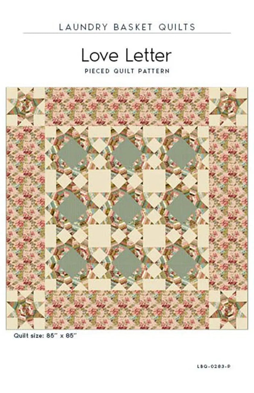 Love Letter Pieced Laundry Basket Quilts Pattern. Quilt Size is 85" x 85" This quilt pattern is jelly roll friendly! Recommended for intermediate quilters.