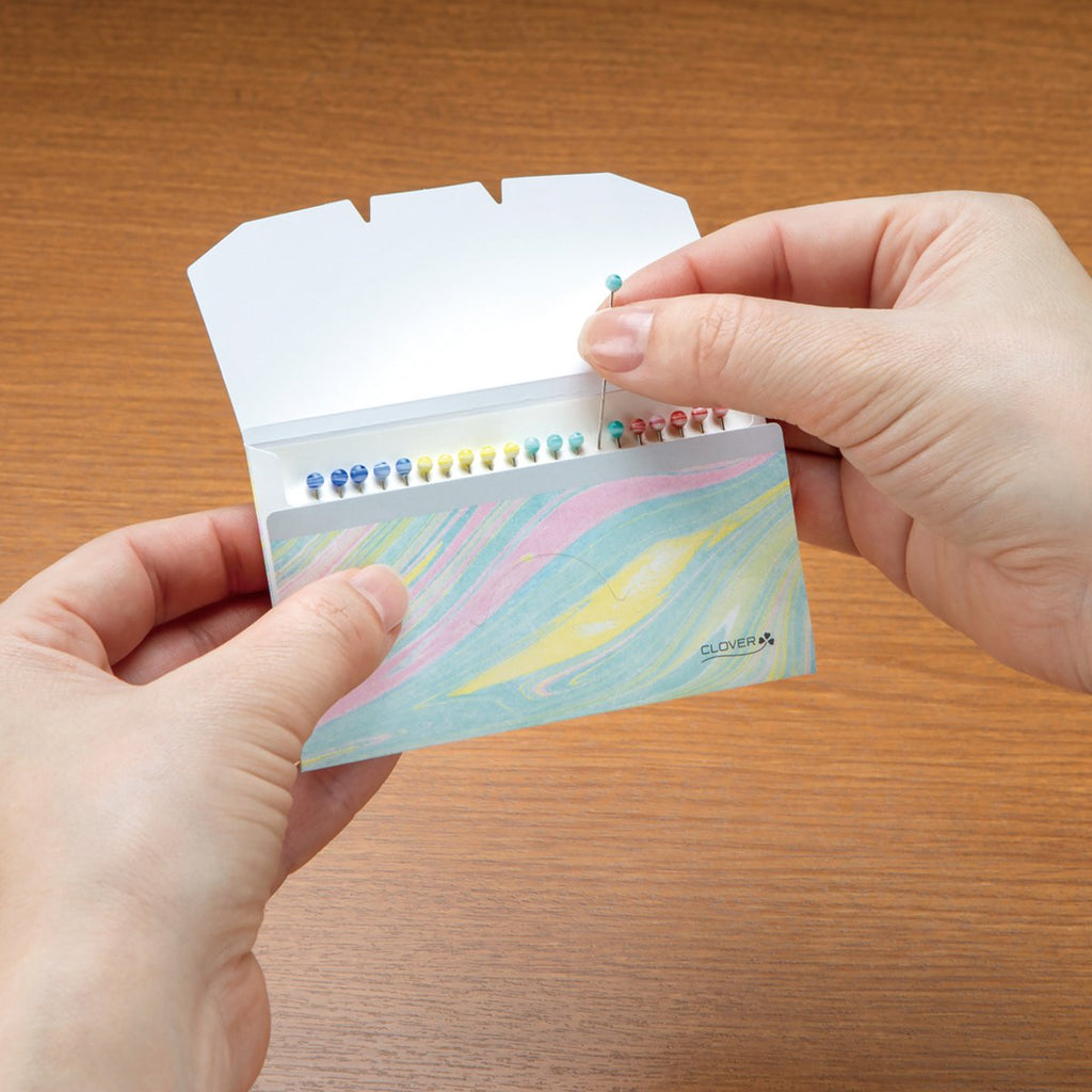 The Marbled Glass head Pins are good for general pinning. They are similar to quilting pins but shorter and finer. The pins come in an assortment of red, yellow, green and blue marble. The glass head pins are heat resistant.
