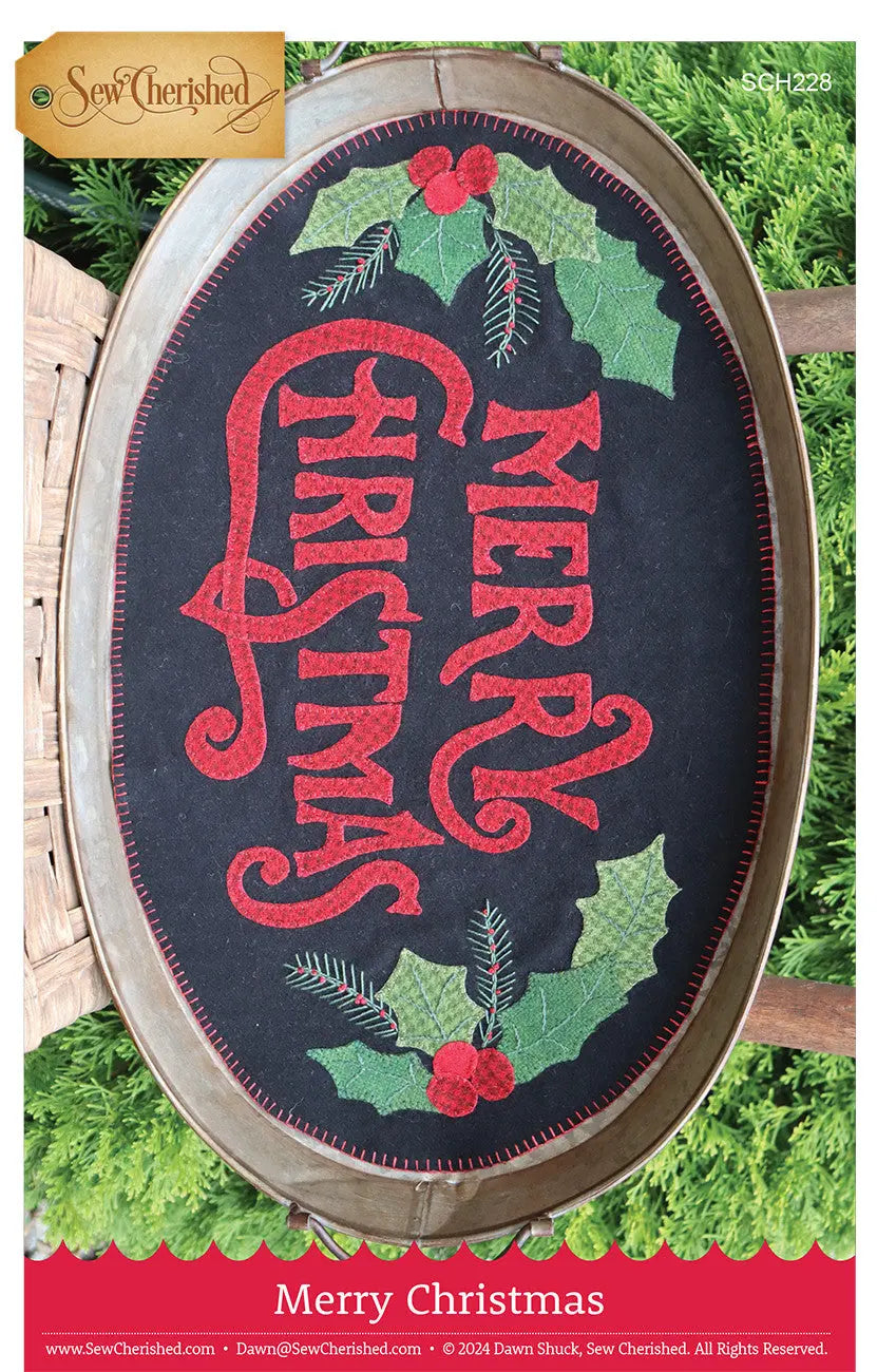 Merry Christmas Wool: Beautiful tray mat can be centerpiece for your Christmas decor. Done in 100% wool this finished mat measures 21" x 13".