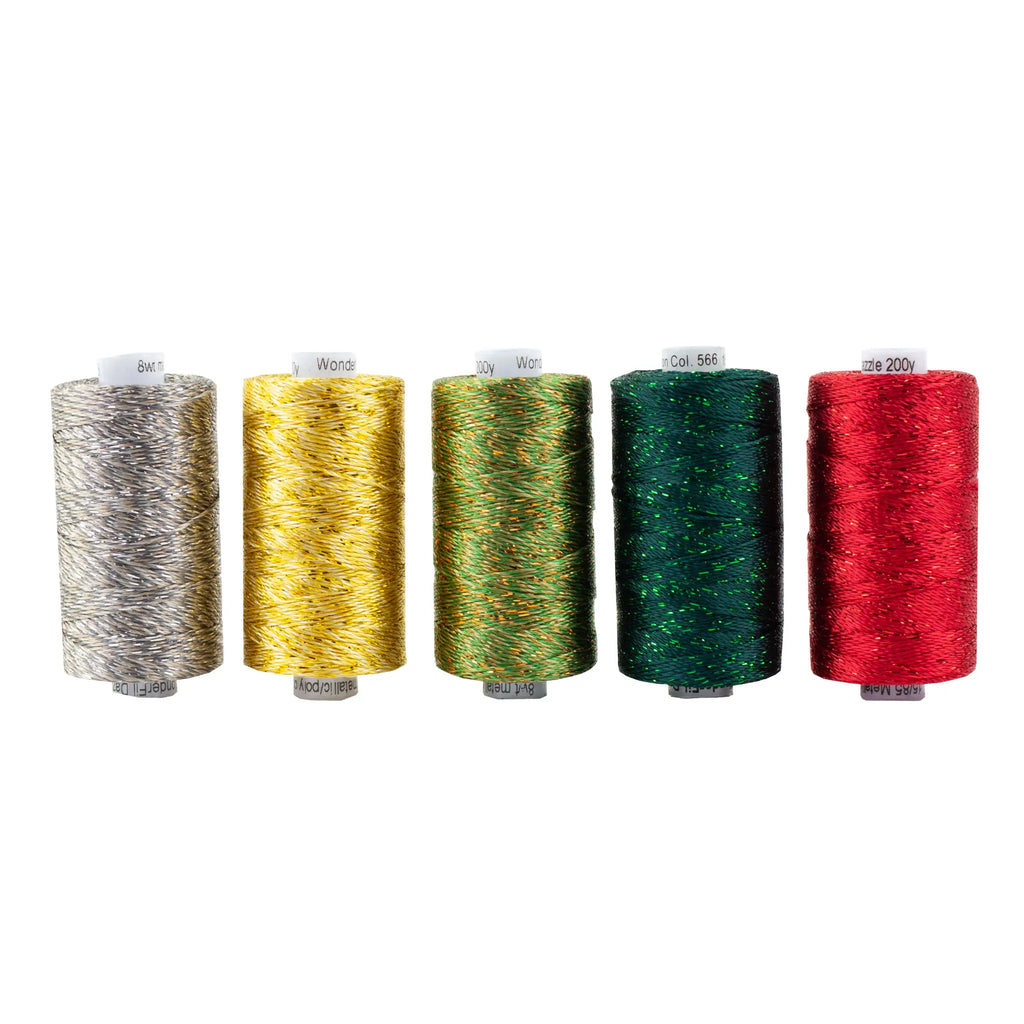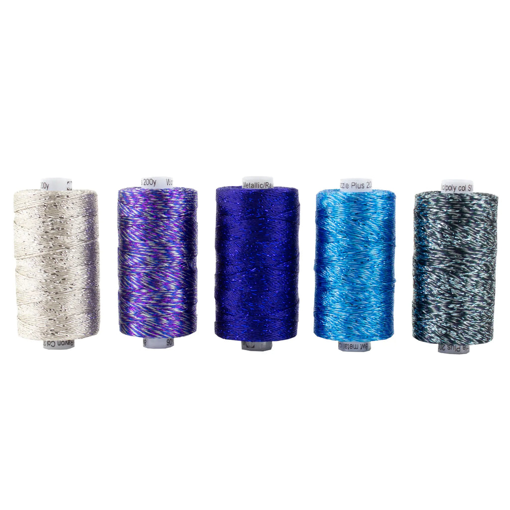 Dazzle™ is an 8wt rayon thread with a single strand of metallic running through it. It makes the perfect match for hand embroidery, couching, bobbin work, serger loopers, crochet, knitting, crafts, and more! The single strand of metallic adds a bold sparkle to any project, allowing your creations to stand out. Incl. 5 x 183m (200yd) spools.