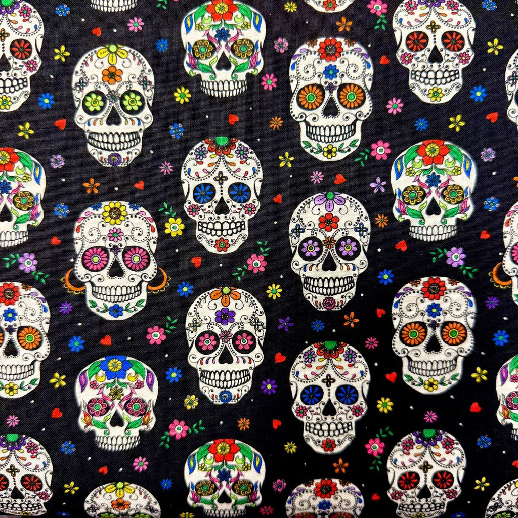 Midnight Black Skull Cotton 44"/45" Fabric Per Yard