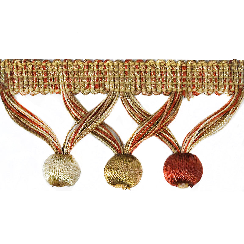 MIlante Collection - 1 3/4" Length BALL FRINGE (25 Yard Roll) - BF-1481-88/61 Rust and Taupe